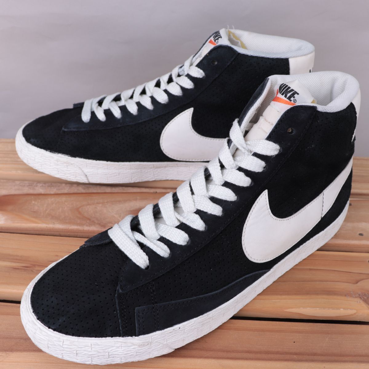 z1537 ナイキ ブレーザー ミッド US9.5 26.5cm/黒 ブラック 白 ホワイト NIKE BLAZER MID ブレザー レディース スニーカー 中古