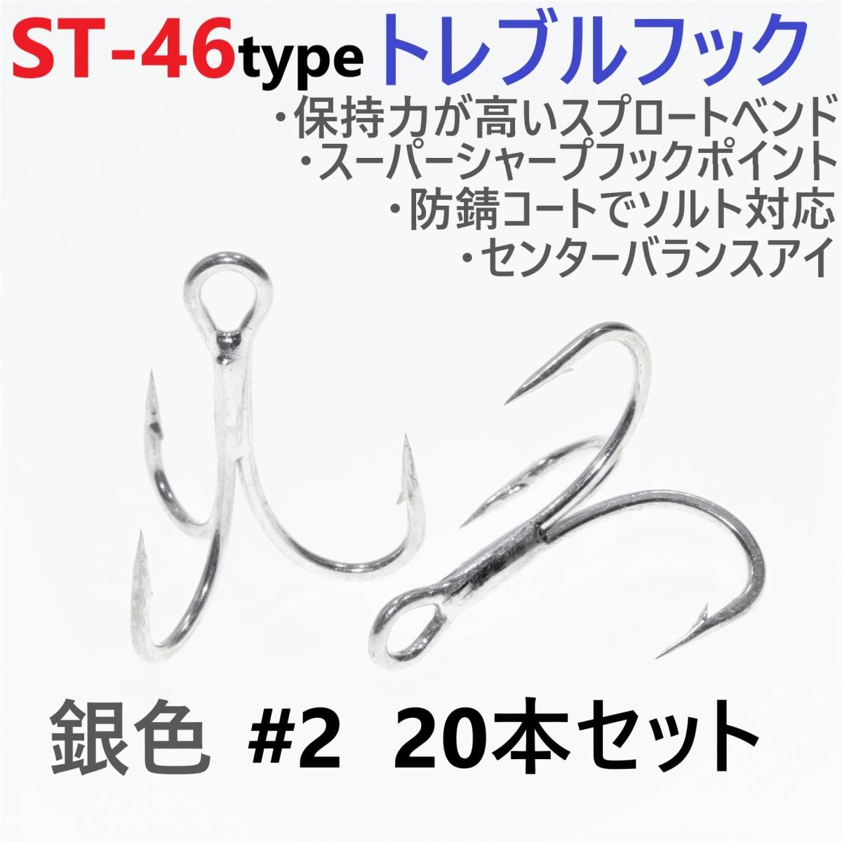 ST-46タイプ防錆トレブルフック シルバー#2 20本セットの出品です。