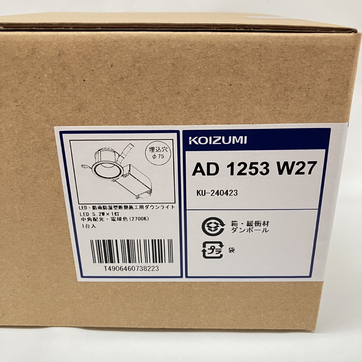 〇〇 KOIZUMI コイズミ コイズミ照明 LED ダウンライト 高気密SBダウンライト AD1253W27 未開封品 未使用