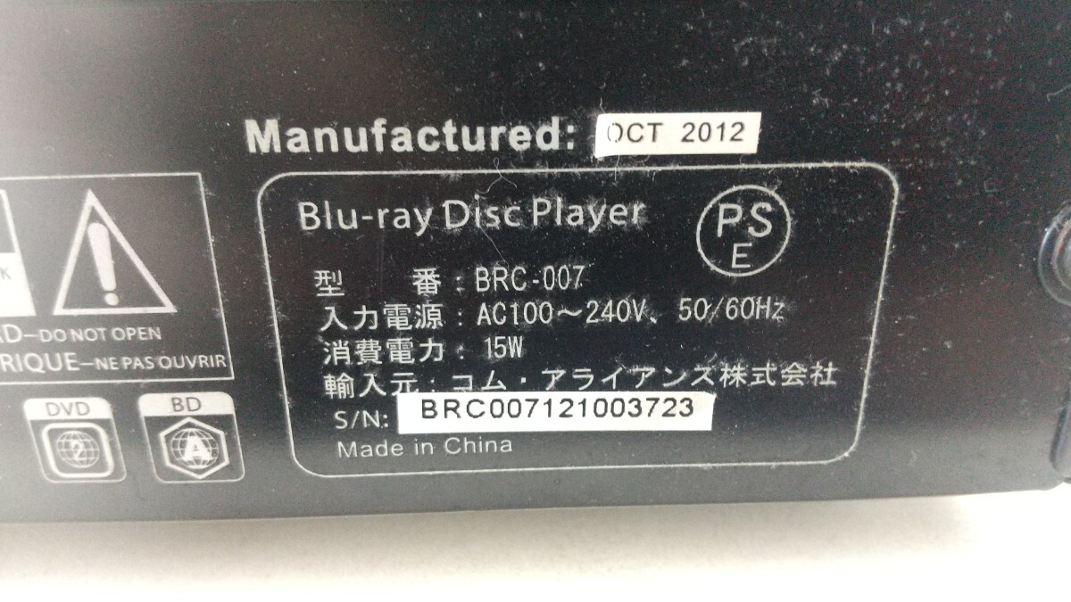 K1561 コム・アライアンス 2012年製 Blu-ray&DVD再生確認OK ブルーレイプレイヤー /動作品 現状品