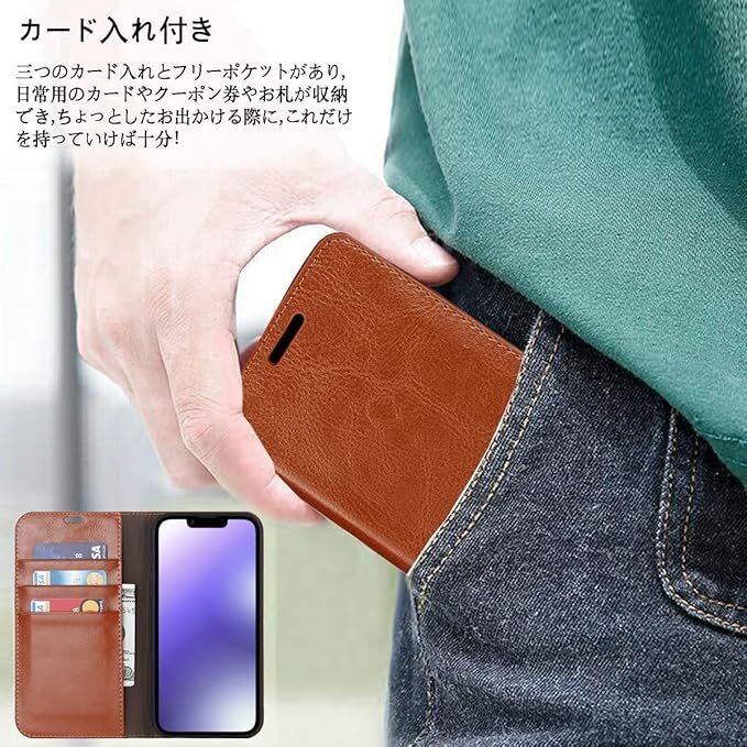 • 【機能性①】:シンプルでシックなデザインで、場所問わず長くご愛用いただける手帳型です。丈夫で、汚れ防止と摩擦耐性を持つスマホケースです。