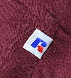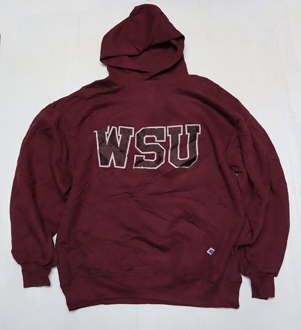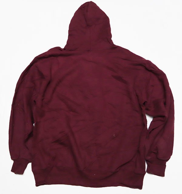 80-90年代頃のアメリカ製のRUSSELLのスウェットパーカーの小豆系でレタード貼り付け文字です。
