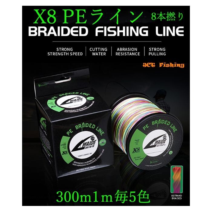 PEライン 2号 8本撚り X8 300m 1m毎5色 マルチライン 5色 釣具 糸