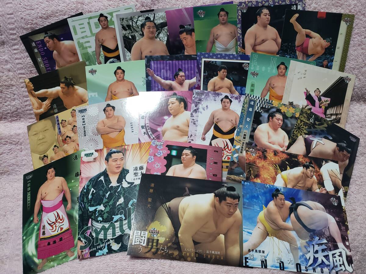 ベースボールマガジン社(BBM社)より発売された「大相撲カード」に封入されておりました遠藤聖大関のレギュラーカード25枚セットになります。