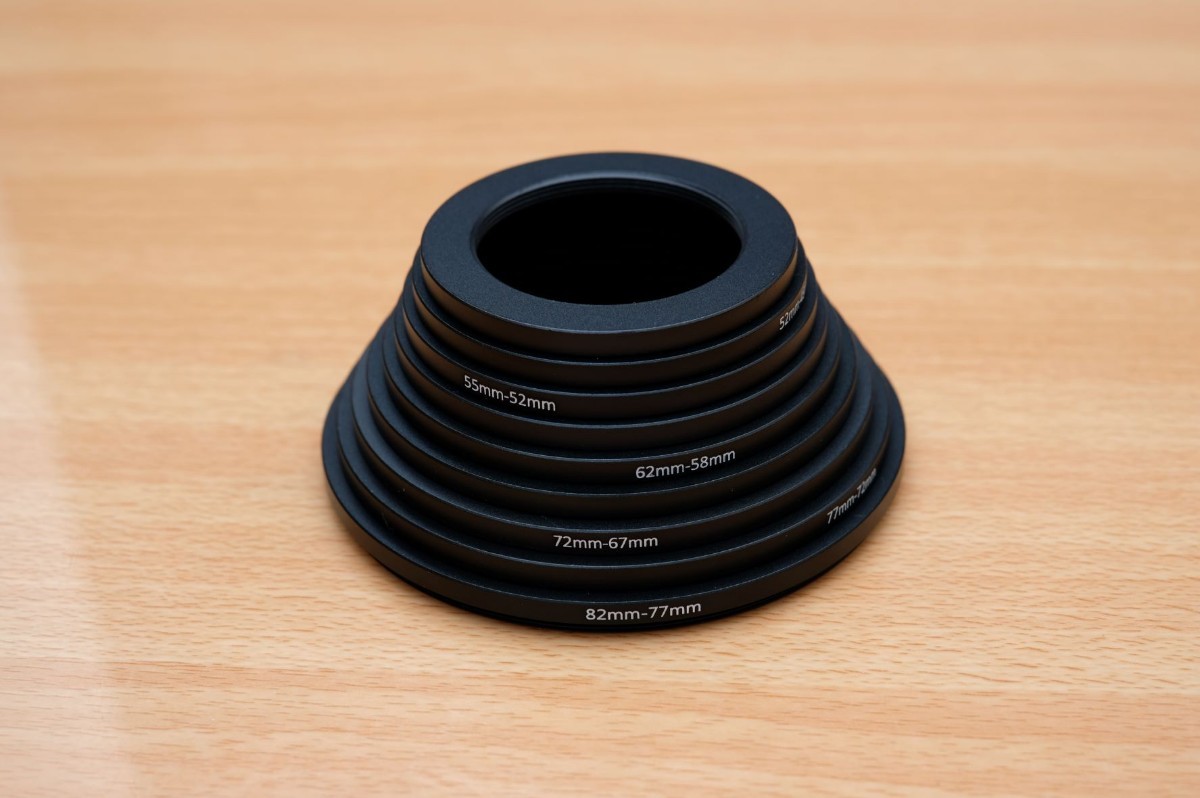 お手持ちのカメラのレンズ口径より小さなサイズのフィルターやコンバージョンレンズを装着するために使用するリングです。