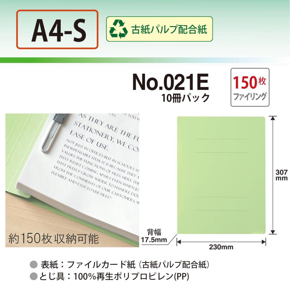 規格:A4-S×10冊 / 品番:No.021E / カラー:グリーン