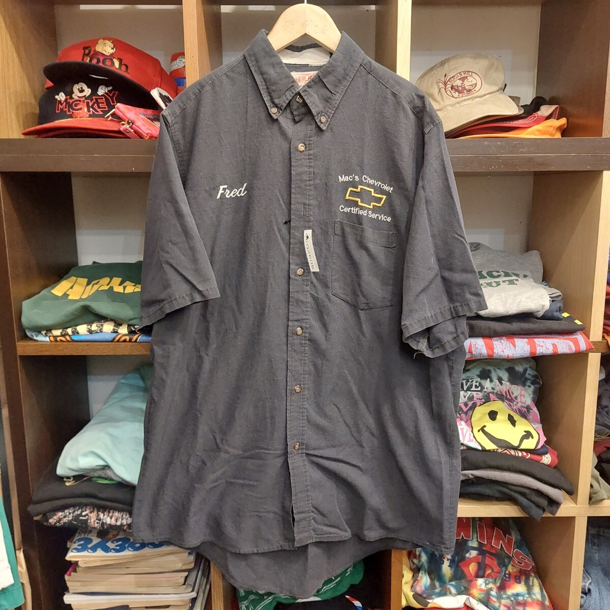■商品      :REDKAP シボレー ワークシャツ 半袖 ボタンシャツ 刺繍ロゴ フェード ブラック 炭黒 06G2605