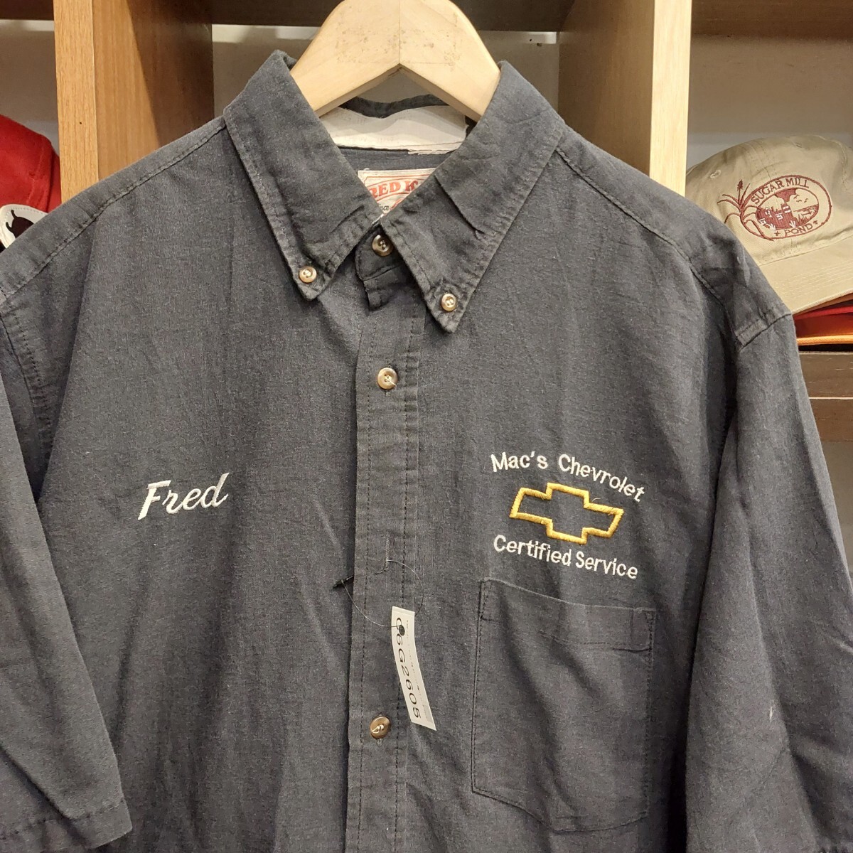 REDKAP シボレー ワークシャツ 半袖 ボタンシャツ 刺繍ロゴ フェード ブラック 炭黒 06G2605