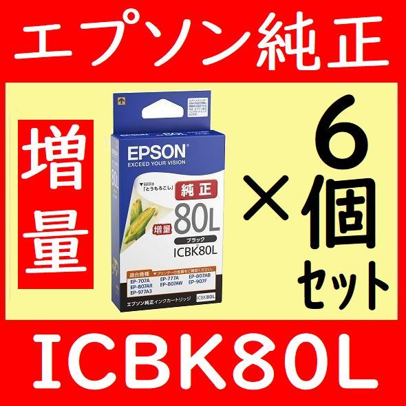 6個セット ICBK80L 増量 とうもろこし ブラック エプソン純正 黒 推奨使用期限2年以上