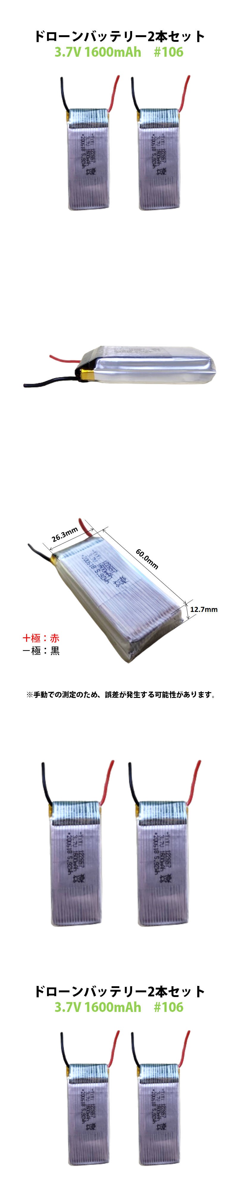 | ドローンの汎用バッテリー2本セットです。電圧:3.7V,容量:1600mAh |