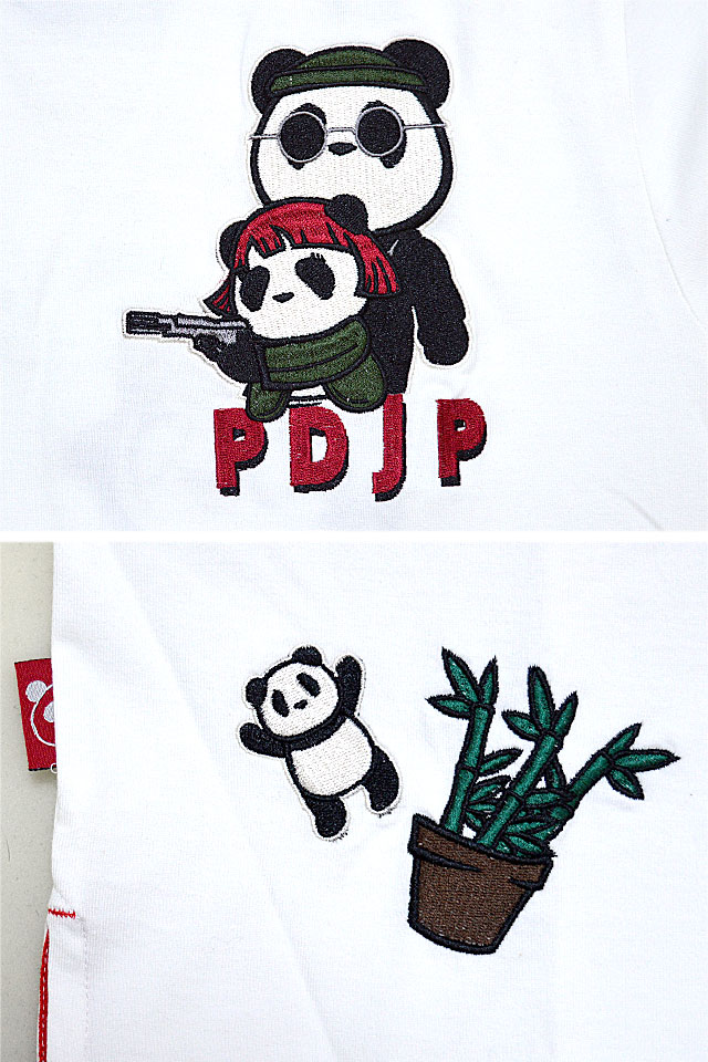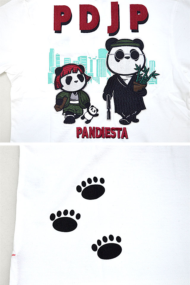 和柄ブランド【錦】の姉妹ブランドとして誕生した、お茶目なパンダをモチーフとした【PANDIESTA JAPAN】より「ヒットマン半袖Tシャツ(554852)」のご紹介です。 今や、錦の定番モチーフとなった「錦PANDA」!! パンディエスタのオリジナルボディはクオリティが高く、繰り返し着用、洗濯していただいても型崩れしません。 今回はあの有名な作品のオマージュ。 ヒットマンに扮したパンディエスタをフロントバックにそれぞれ刺繍しました。 フロント裾には笹が植えられた植木鉢とパンダのぬいぐるみがワンポイントで描かれています。 | |||||||||||||||||||||||||