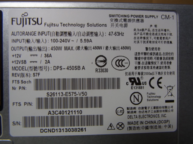 富士通/FUJITSU PRIMERGY RX300 S7 純正450W電源 です。