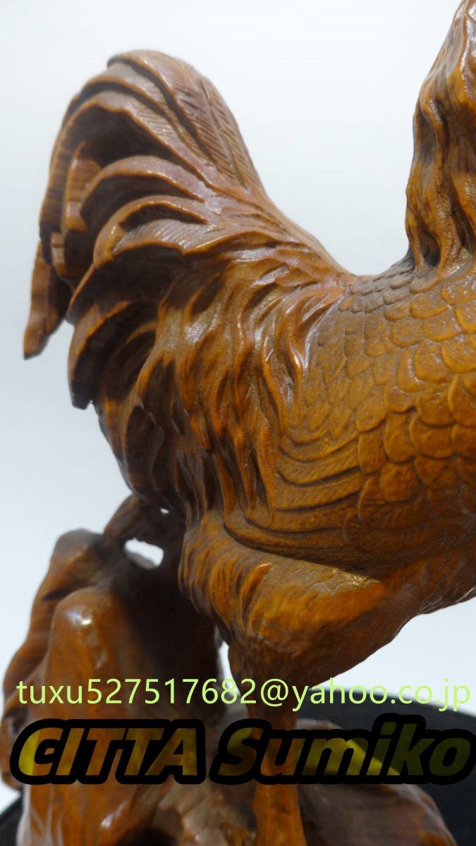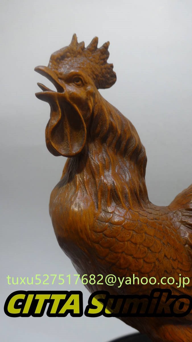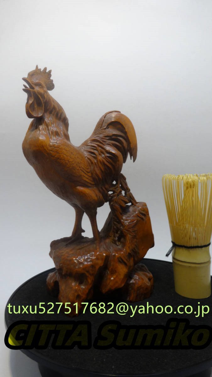 新作 拓植木細彫 十二干支 鶏 置物 鳥 古美術 時代彫刻 美術工芸