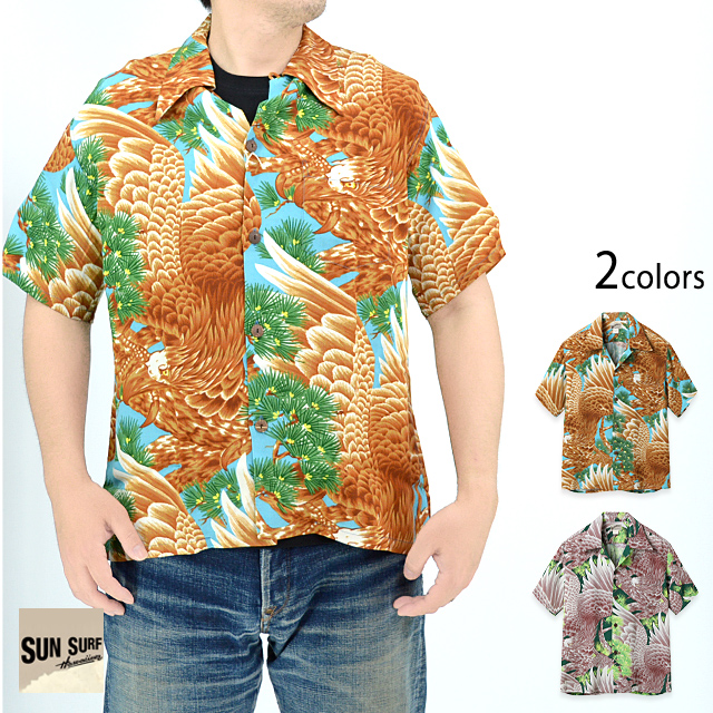 アロハシャツの黄金時代とされる1930~50年代にかけて作られた「ヴィンテージ」と呼ばれる貴重なアロハシャツを再現し、現代に蘇らせているブランド「SUN SURF」から、SPECIAL EDITION レーヨンアロハシャツ「TAKA -MASTER OF THE HUNT-」(SS39273)のご紹介です。 今にも獲物に飛びかかろうとしている、羽を広げた鷹の姿を描いた大作。 ハワイアンシャツの全盛期を築き上げたブランドの中で、異色かつ大きな成功も収めたとして有名なのが、インド系移民のG・J・ワットムルが1913年に創業したイースト・インディア・ストアが展開していたワットムルス。 ボディーには、てろんとしたレーヨン壁縮緬を採用。 アロハシャツは、生産も非常に少なく、レアなアイテムとなっています。 | ||||||||||||||||||||||||||||||