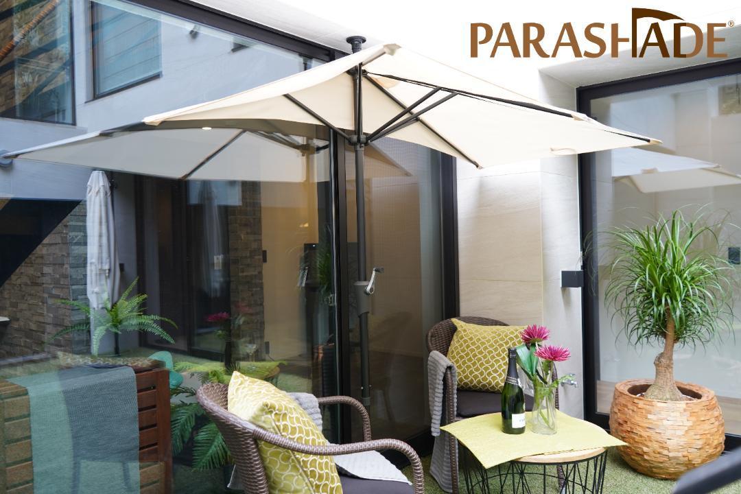 | #紫外線カット #UVカット #ガーデンパラソル #パラソル #ウッドデッキ ・工事不要 テラス 軒先 【材質/重量】 支柱:スチール 傘親骨:スチール 生地:ポリエステル 開閉ハンドル:アルミ合金 重量:約5.0kg 【パラシェード レクタングルの特徴】 ◆ 画期的な突っ張り固定式&長方形デザインで、高さ200~310センチ、幅200センチ、出幅100センチのスペースさえあれば設置可能。支柱は約Φ38です。 ◆突っ張り固定式なので工事不要、道具不要。届いたその日からお使い頂けます。足元に重しなどを置く必要がないので広々と使えるのがうれしいポイント。 【取り付け方法】 ◆1.設置場所の高さを測る。 ◆2.高さに応じて突っ張り棒の長さを調整。 ◆3.突っ張り棒を固定したら傘部分を広げる。 ◆わずか3ステップでとても簡単。 ◆女性一人でもたったの5分で設置できます。 【設置環境の確認】 ◆1.突っ張り棒の受け面が十分に硬くて丈夫な面であること。また長期的に強い圧力が掛かった り、強い振動を与えたりしても変形しない面であること。 (500kg以上の押さえ圧に耐えられる面。目安は金づちで叩いても変形・破損しない面)=突っ張り棒の受け面が十分に硬くて丈夫な面でないと、本製品は設置できません。 芝生などやわらかい土台の場合は、床にコンクリードブロックなどを置き、安定感のある固い平らな面に設置してください。 ◆2.突っ張り棒の受け面(天井・床)が水平面から見て4度以内であること。 ◆3.取付け場所の寸法が、本製品の規定範囲内であること。 ※2階以上には設置しないでください。強風時は必ず巻き上げて、使用しないでください。 ※芝生などやわらかい土台の場合は、床にコンクリードブロックなどを置き、安定感のある固い平らな面に設置してください。 | |||