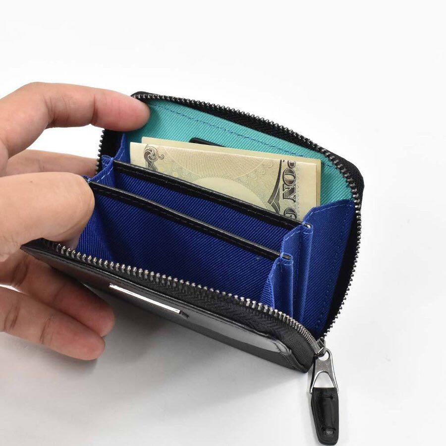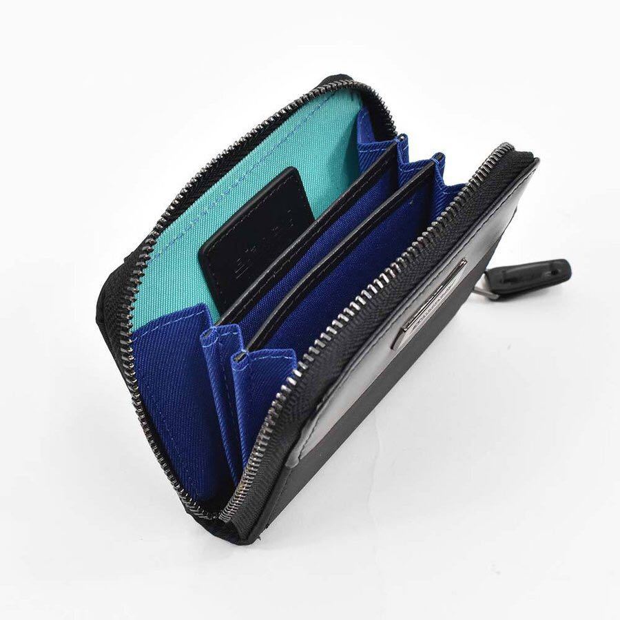 内部は仕切りで3部屋に分かれており、それぞれカード、小銭、三つ折りの紙幣などと仕分けして使用できます。また、背面にはICカード等を入れるポケットも付いており、これ1つで外出できる機能的コインケースです。