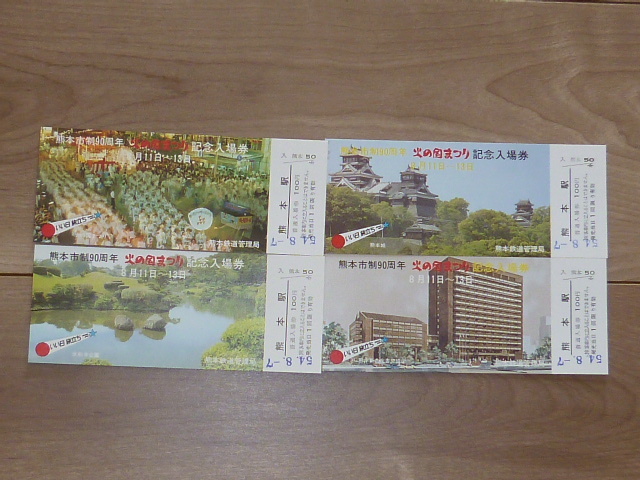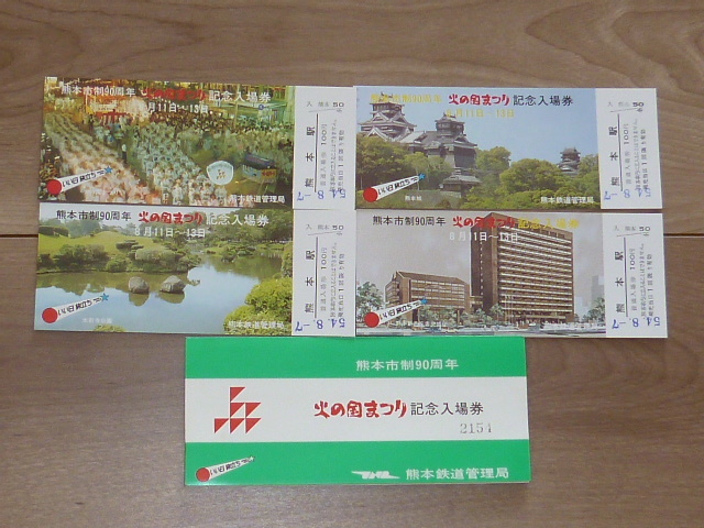記念切符★熊本市制90周年 火の国まつり 記念入場券★熊本鉄道★昭和54年★4枚★2154