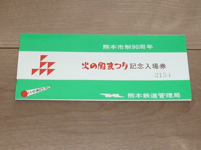 ※ 記念切符★熊本市制90周年 火の国まつり 記念入場券★熊本鉄道★昭和54年 ※