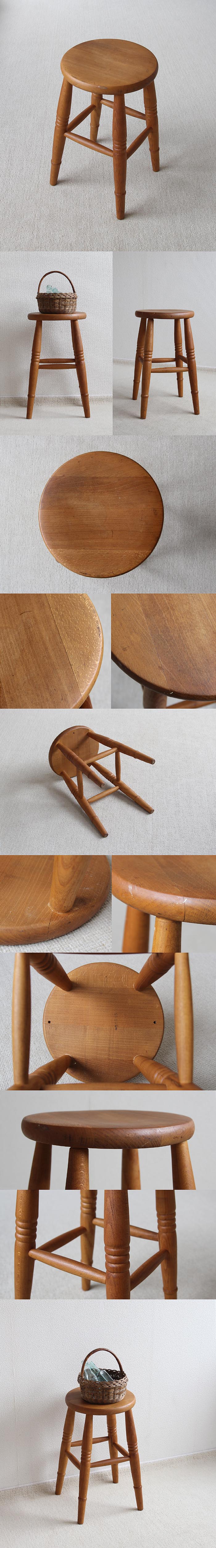 ●イギリス ヴィンテージ スツール 丸椅子 木製 カントリー 踏み台 店舗ディスプレイ インテリア 家具「花台にも」V-487