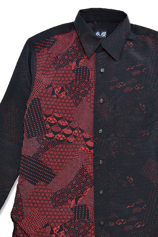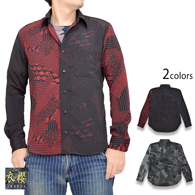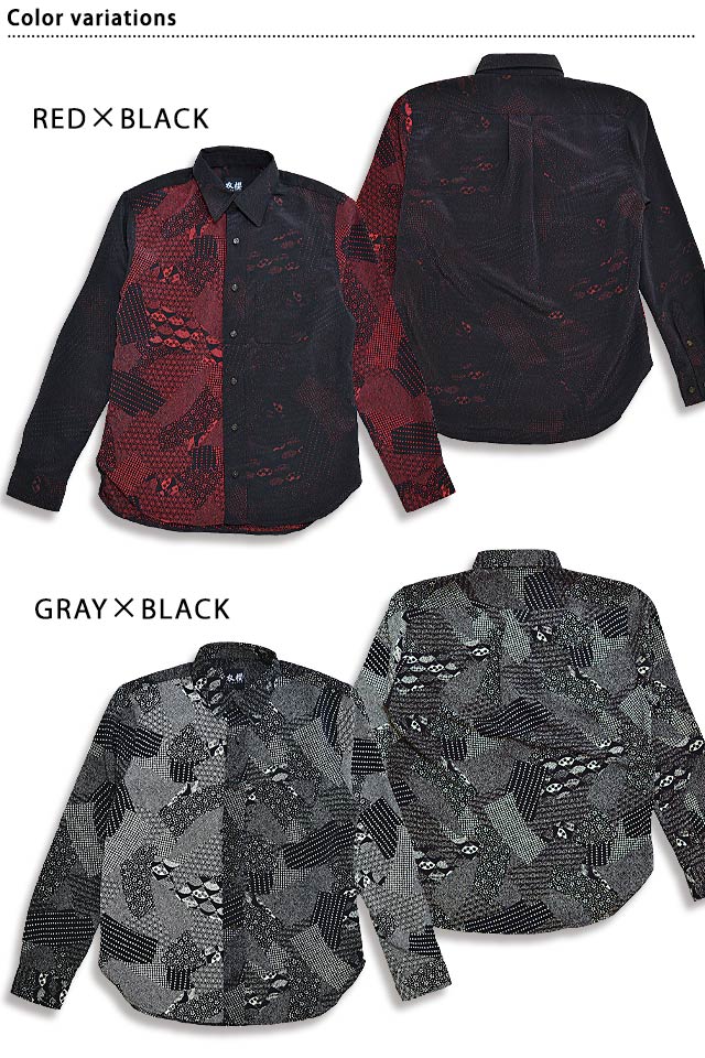 | 二色縮緬2トーン配色切替長袖レギュラーシャツ「幾何学」◆衣櫻 KSK-M08892 | |||||||||||||||||||||||||