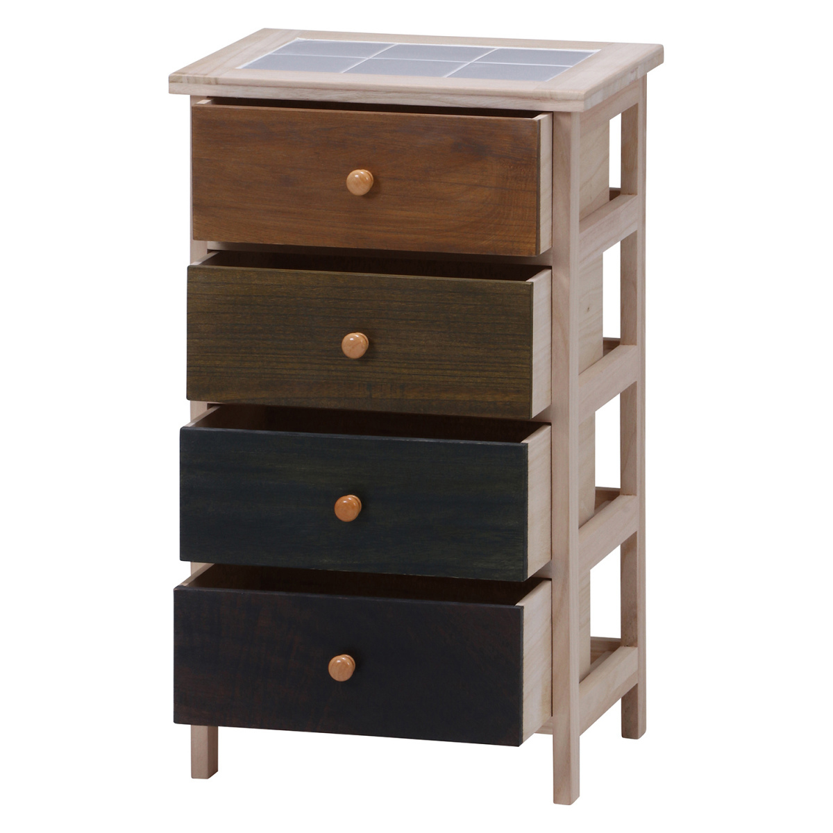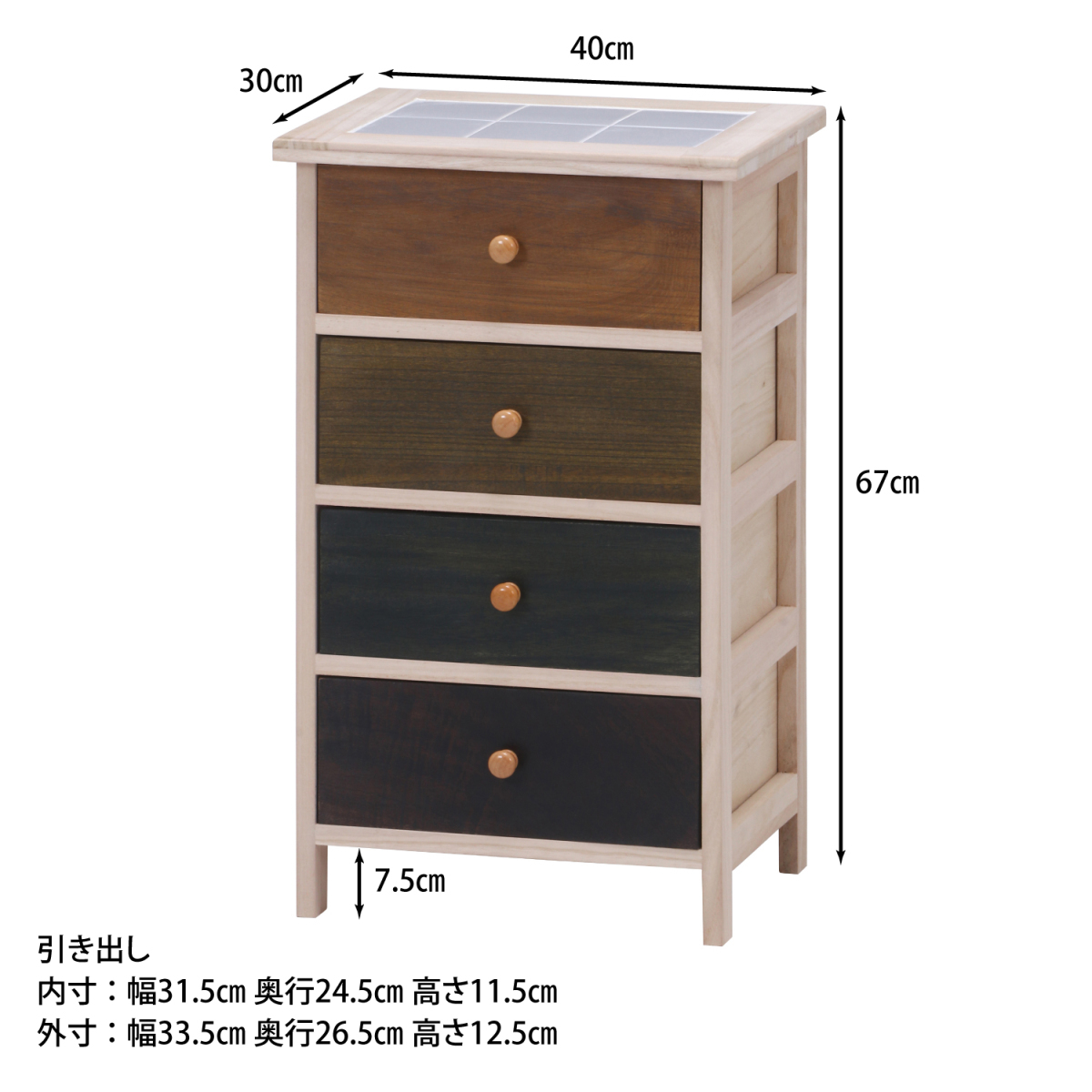 収納 便利 多機能 木製 ラック 飾り棚 多目的棚 マルチラック フリーラック キャビネット 多目的 便利 4段 送料無料 スリム おしゃれ 素敵 サイドチェスト サイドボード 野菜 天板タイル 引き出し 引出し 抽斗 ボックス