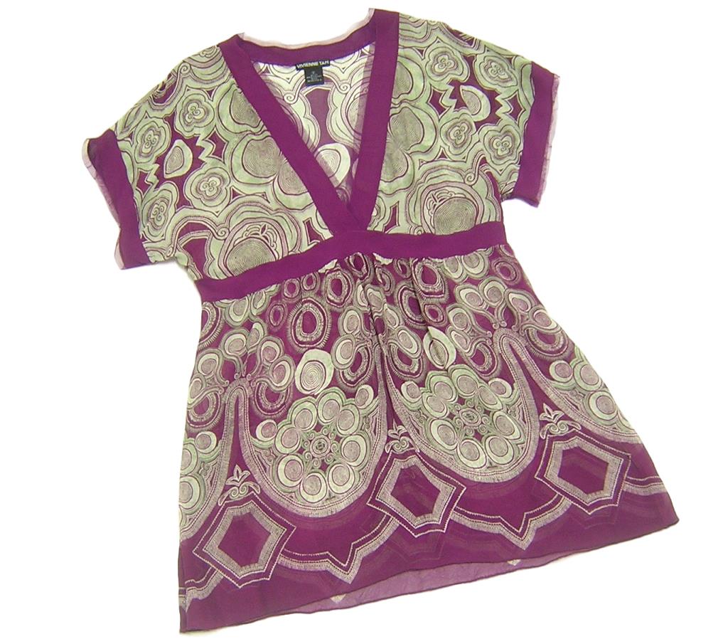 VIVIENNE TAM の香港製、 シルクブラウスでございます。 透け感あり/伸縮性なし/サイドファスナー | |