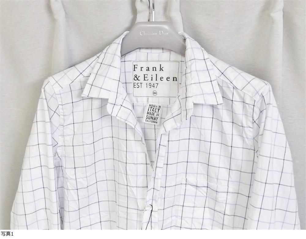 ★Frank&Eileen フランク&アイリーン 長袖 シワ加工 チェック シャツ ホワイト ブルー 希少XXS BARRY USA アメリカ製 未使用 新品 送料無料