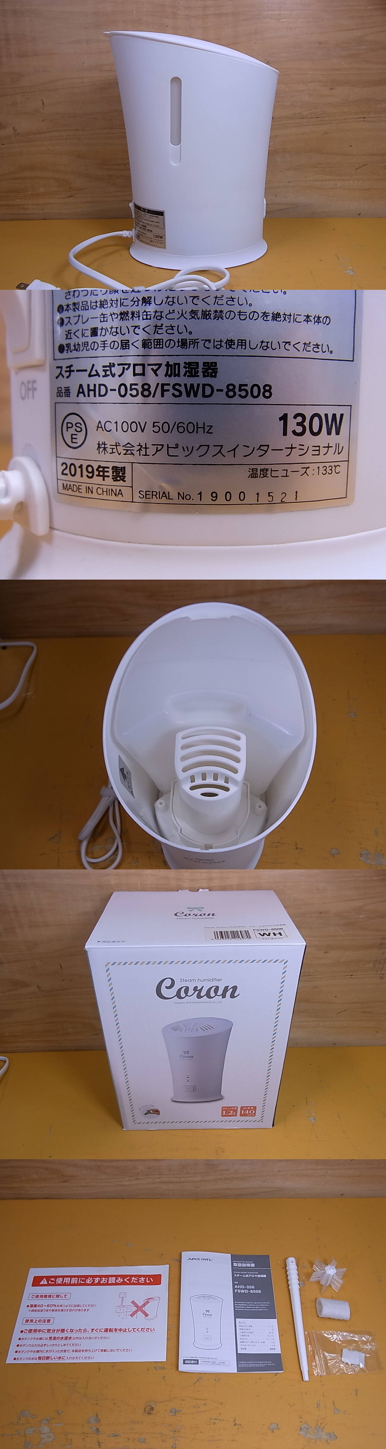 | □Yf/268☆アピックスインターナショナル APIX INTERNATIONAL☆スチーム式アロマ加湿器 Coron☆FSWD-8508☆動作OK | |