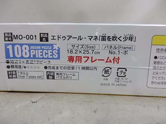 フレーム付 ジグソーパズル 笛を吹く少年 (エドゥアール・マネ 108PS 未開封 送料は商品説明欄に記入
