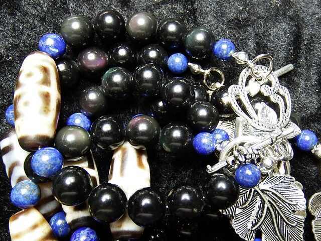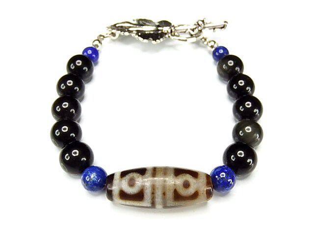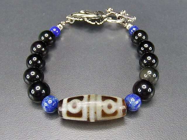 天珠メノウオブシディアンラピスラズリ天然石ワイヤブレスレット石街プライム