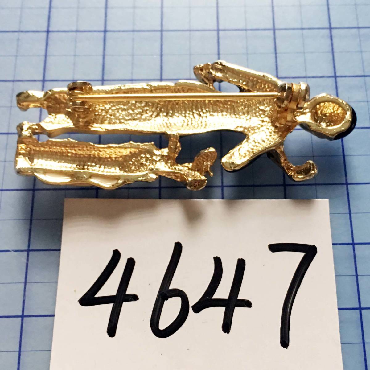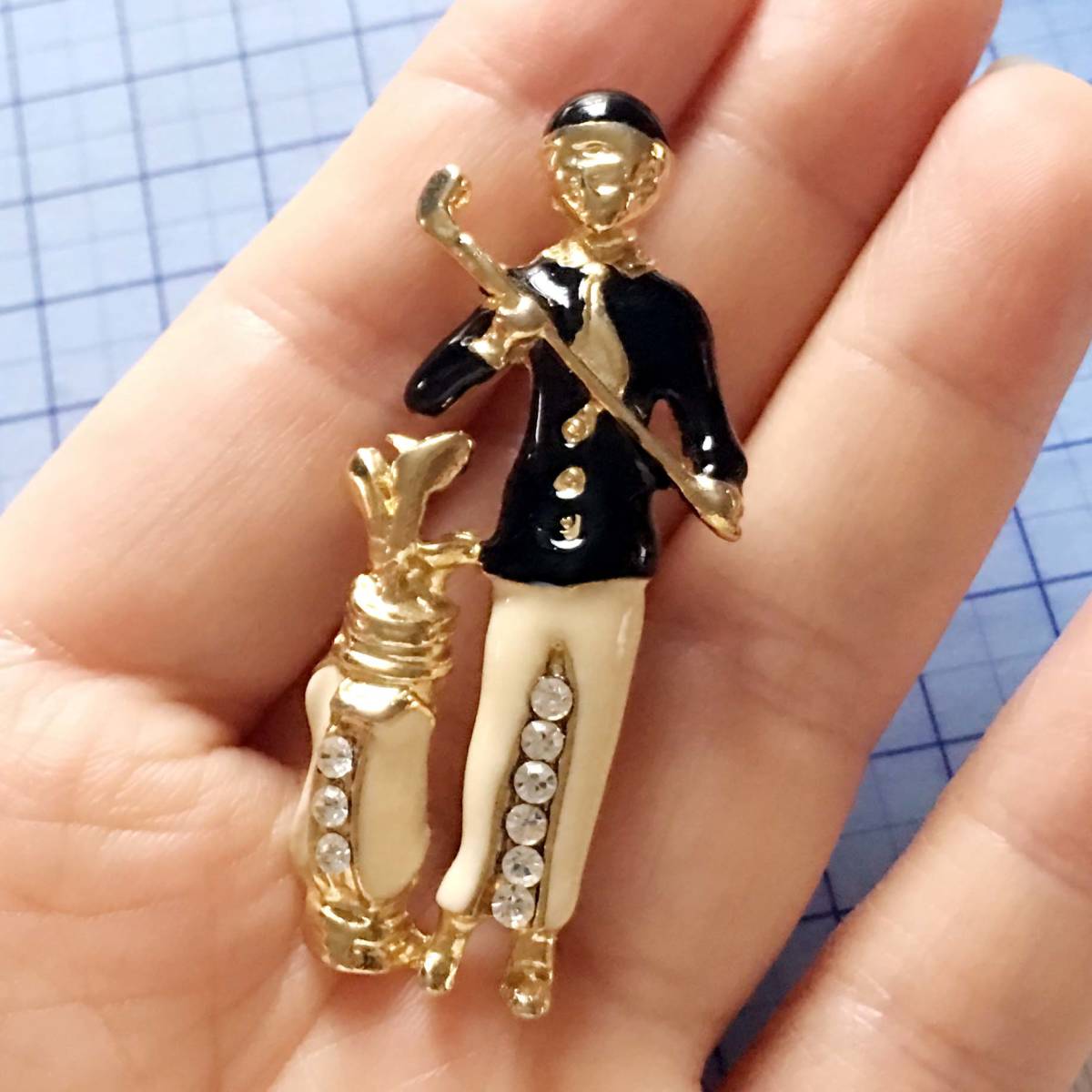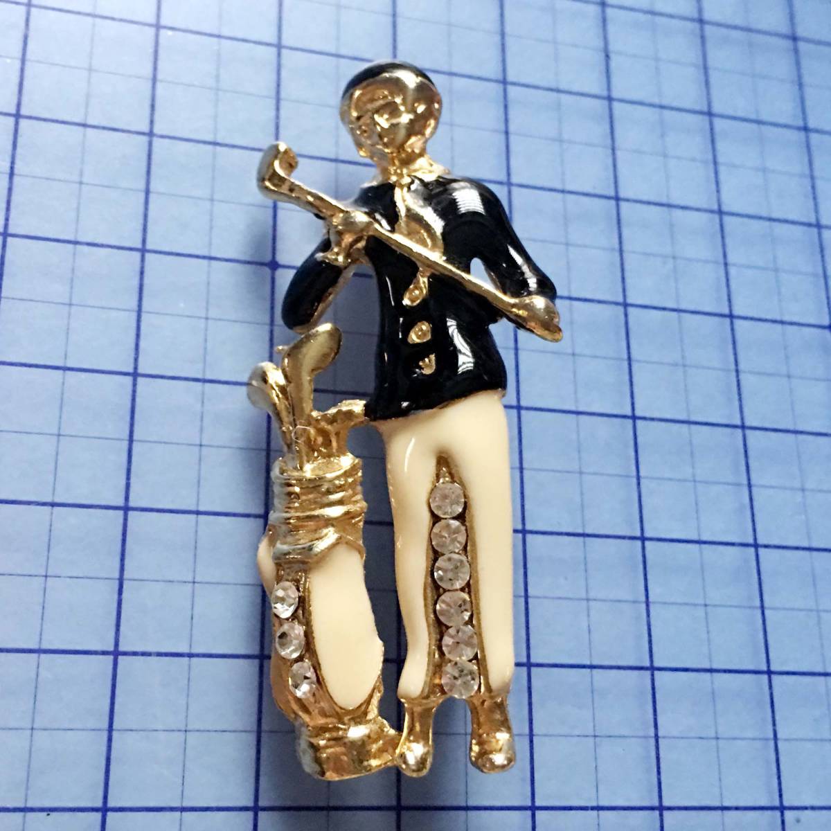 美品 エナメル ラインストーン ゴルフ ゴールド ブローチ NO.4647