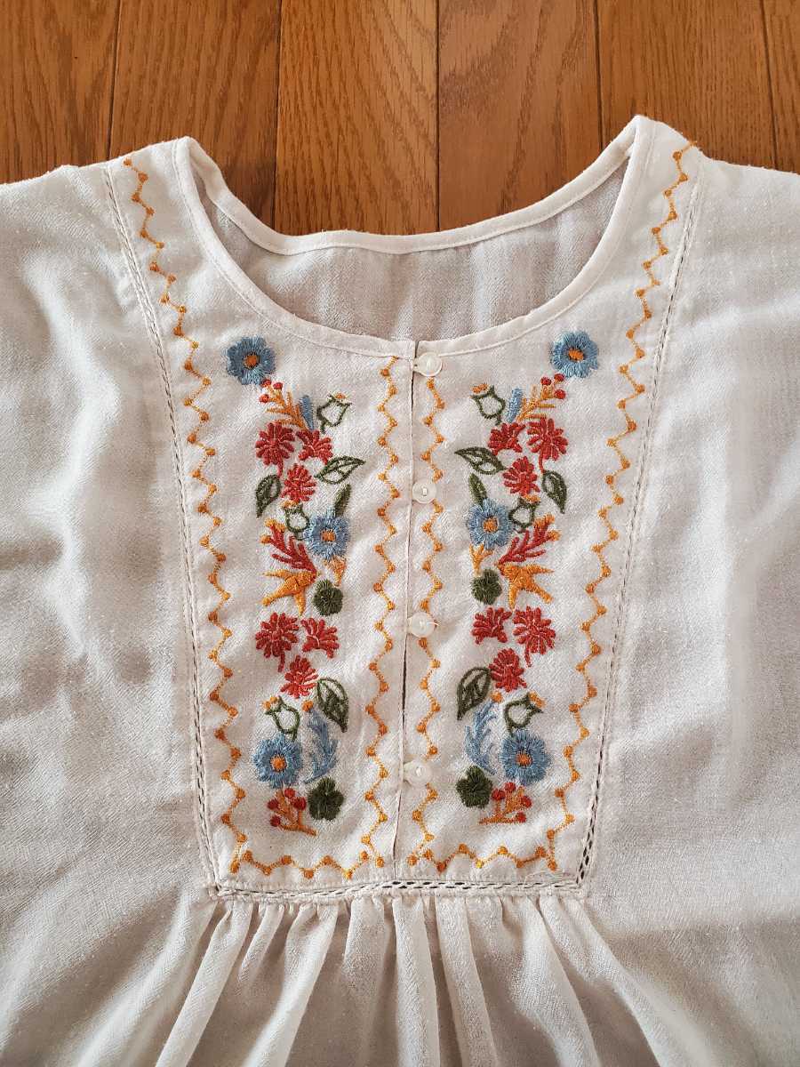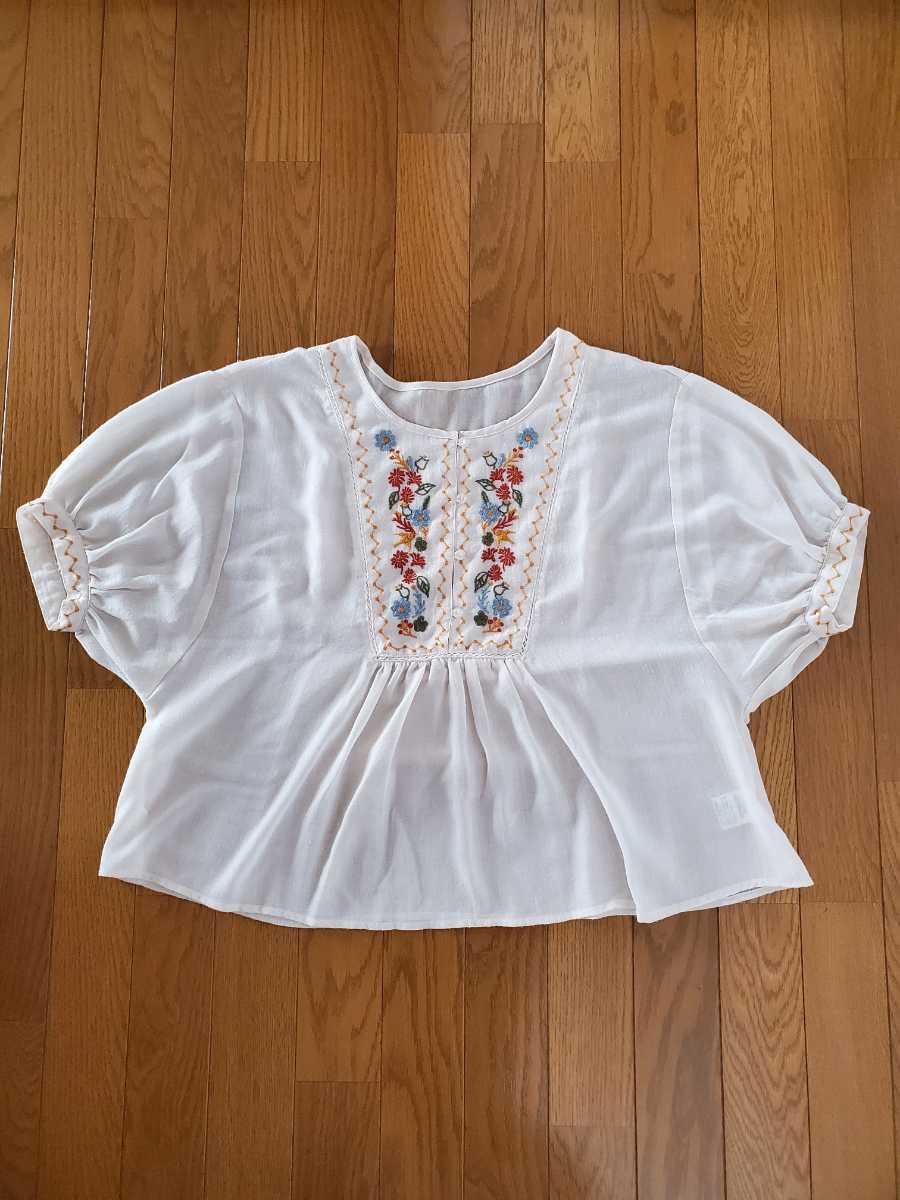 着丈約56.5cm、身幅約55cm、Mサイズです。