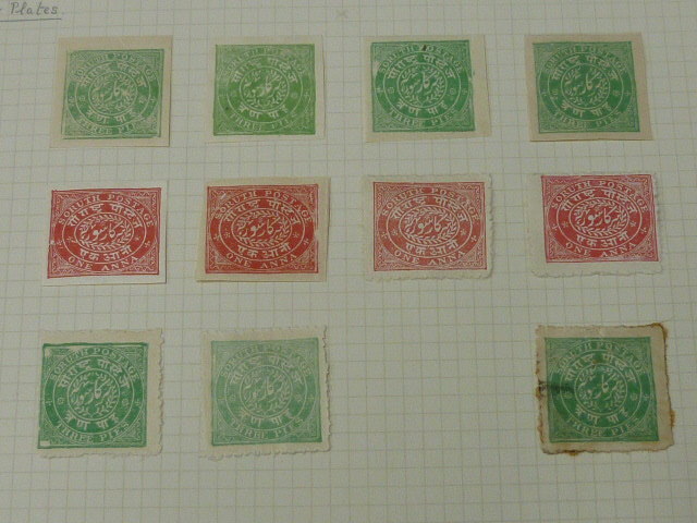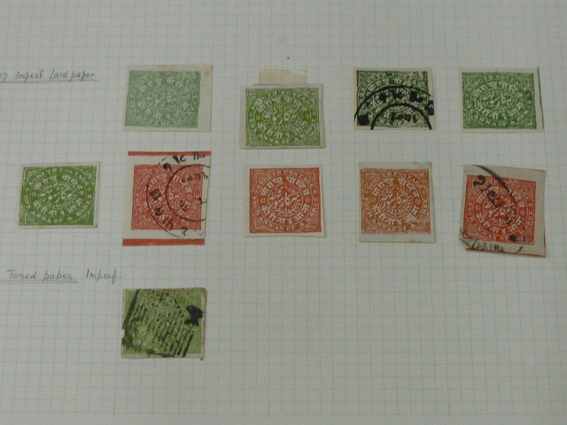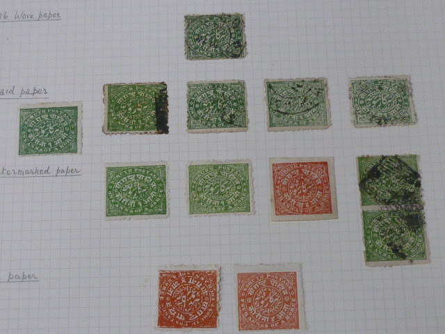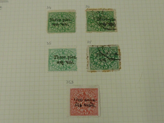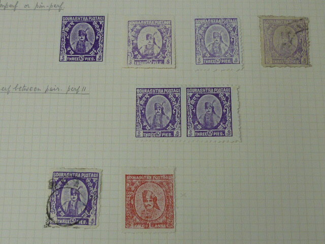 19 本保 A5 インド切手 SORUTH STATES 1864-1923年 SC#1B・4(再版)・11-23 計55枚 未使用、使用済・ヒンジ貼