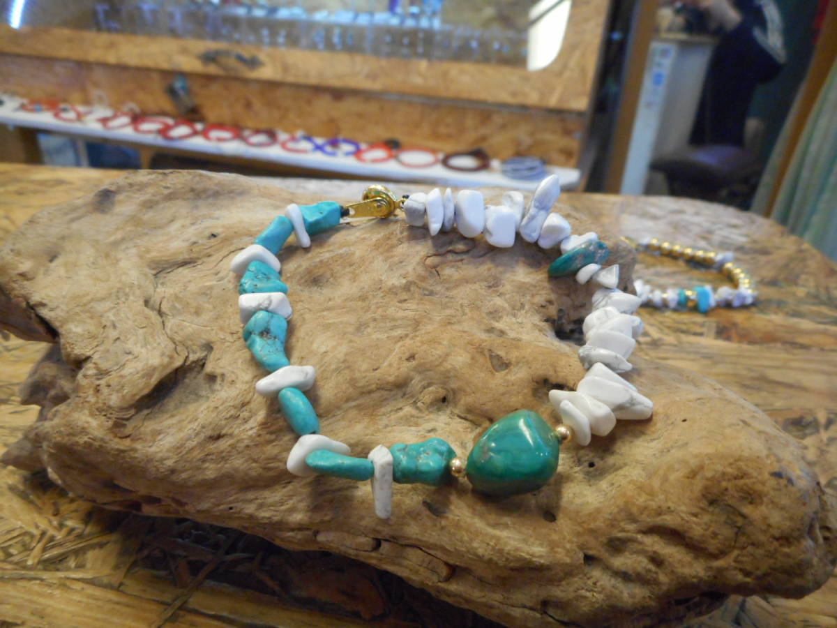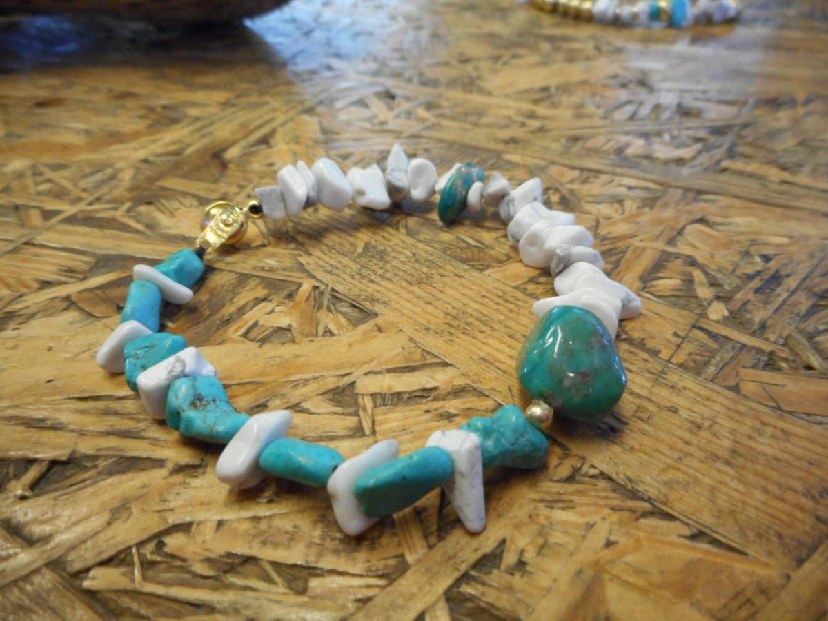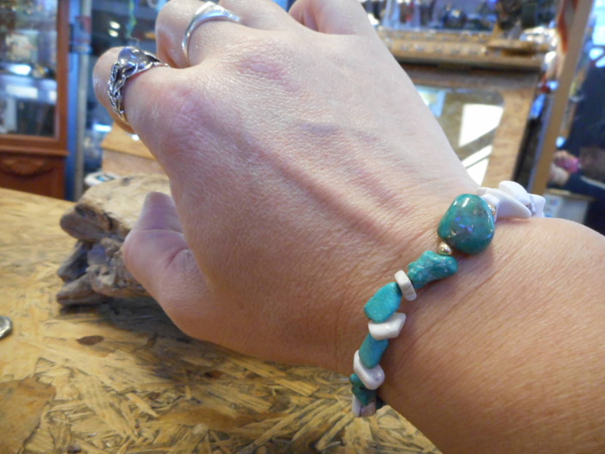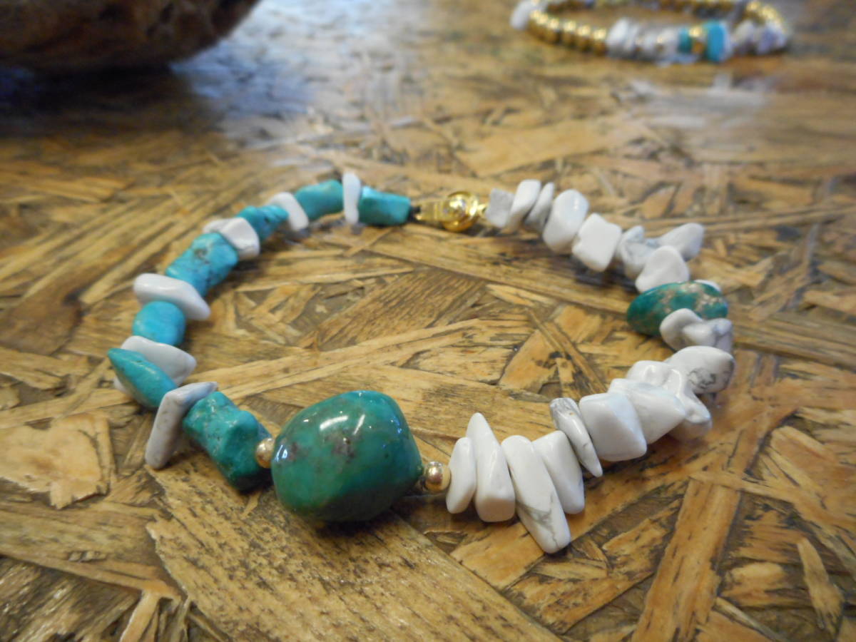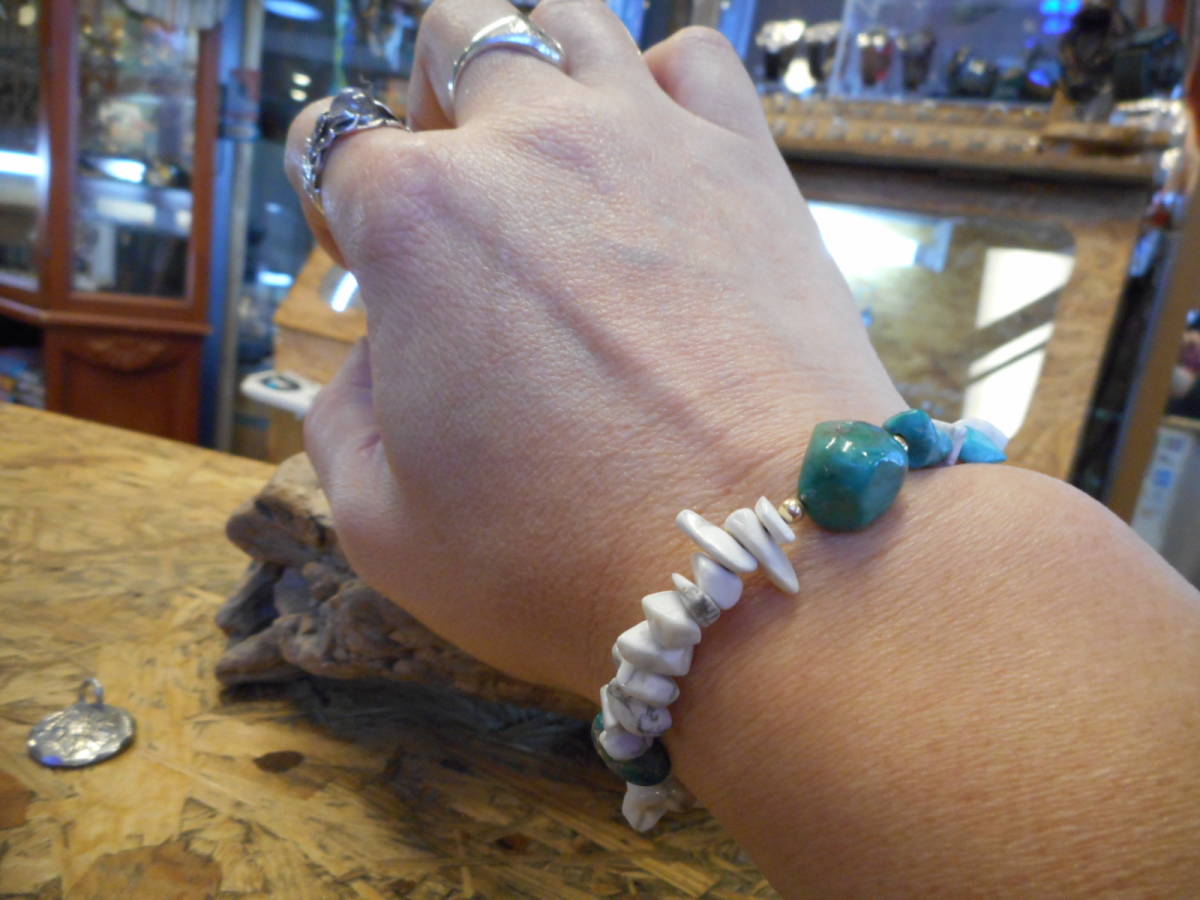 天然石ターコイズ&ハウライトのコンビネーションブレスです