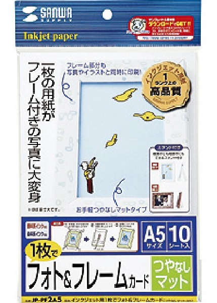 600/フォト&フレームカードつやなしマットA5×10枚シート/インクジェットでフレーム付写真に大変身/SANWA SUPPLY/未使用
