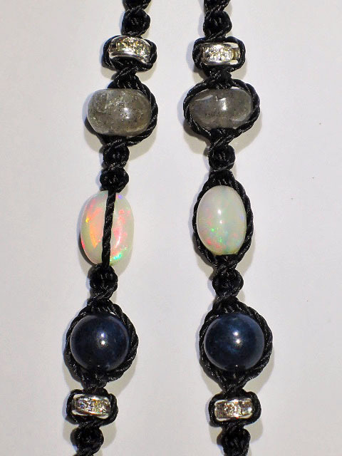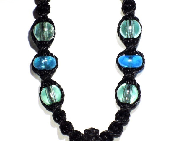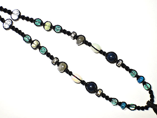 このネックレスはマクラメ編みとゆう手法で編んでいます。