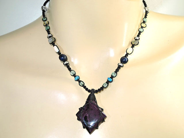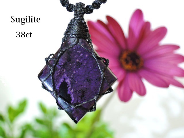 ★スギライト38ct★天然石 杉石★ネックレスペンダント★ハンドメイドマクラメ編み★ジェム宝石★レアビーズ★kamesan