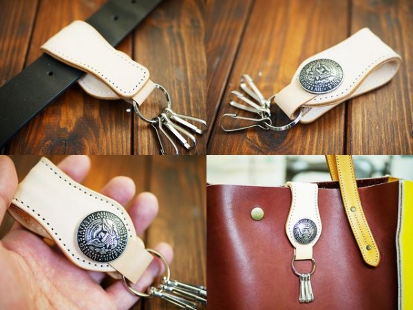 送料無料 チョイ掛け!! レザ-キーホルダー ハンドメイド 本ヌメ 引っ掛けキーホルダーlkh14