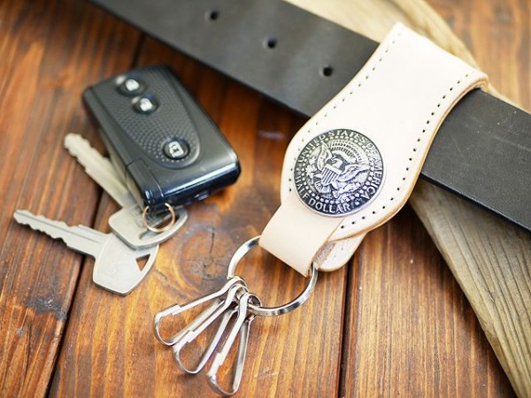 送料無料 チョイ掛け!! レザ-キーホルダー ハンドメイド 本ヌメ 引っ掛けキーホルダーlkh14 タン(ナチュラル)