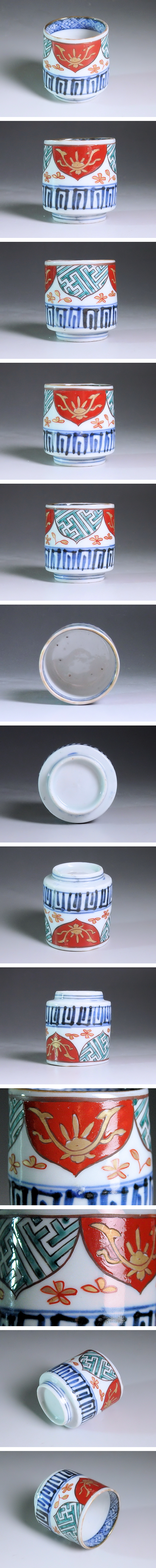 ★華心★ ANy 古伊万里 色絵 兜に紗綾形紋の図 のぞき 猪口