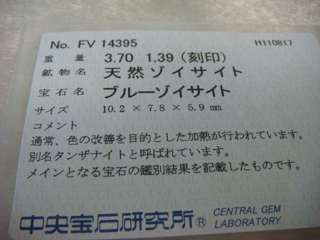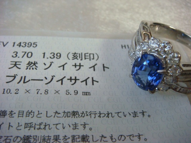 | ご覧頂きましてありがとうございます! 透明度の高いロイヤルブルーのタンザナイトリングです。サイズは約18です。 プラチナ製。Pt900の刻印入り。 タンザナイトは3,70カラットです。周りのダイヤは1,39カラットです。 タンザナイトの周りのダイヤはVSクラスの綺麗なダイヤモンドです。 重さは約15,8gです。中央宝石研究所のソーティング付きです。 大きすぎず、小さすぎない丁度よい大きさです。 タンザナイトは物事を成功に導く石と言われています。 12月の誕生石です。 1年間頑張った自分へのクリスマスプレゼントにいかがでしょうか?購入時百万円以上の高級リングです。 追加画像がありますのでパソコンでご確認ください。 宝石との出会いは一期一会です。『いいな』と思ったら是非、身につけてあげて下さい。きっと宝石も喜ぶことでしょう! 宝石は決して貴女を裏切りません。身につけた貴女を守ってくれることでしょう。 いつも頑張っている自分へのご褒美にいかがでしょうか? 良いものをひとつお持ち下さい。一生物のジュエリーとなります。 画像での判断は難しいと思いますが、落札後の返品、クレーム等の無きよう、ご自分の自己責任においてご入札下さい。 モニター、パソコン、カメラによって色や感じ方が変わりますのでご注意下さい。 商品についてはコレクター、質屋さん、お客様の委託品が中心ですので、ご質問の答えが遅くなる事がありますがご了承下さい。 商品説明につきましてはすべてをお知らせできませんので、質問にてお願いいたします。 基本的にはUSED品ですので、その点を十分にご理解の上ご入札下さい。 途中で出品を取り下げる場合もありますがご了承下さい。 尚、トラブル回避の為、申し訳ございませんが、新規の方及び評価によってはこちらで入札を削除させていただく場合もございますが、ご理解下さい。 メールの確認は夜になりますのでご連絡が遅くなることもありますがご了承願います。 品物にも人と同じように『こころ』があると思います。喜んでいただけることが私にとっても品物にとっても一番良いことだと思います。 『落札したけど気に入らなかった』ということが無いように十分にお考えになってからご入札下さい。 発送は宅配便を予定しております。また発送には2,3日かかる場合もございますが、ご了承願います。 お互いに気持ちよい取引のため、落札後3日以内のご連絡、5日以内のご入金頂けない場合は申し訳ございませんが取り消しさせていただきます。 落札金額より僅かですが『子ども虐待防止 オレンジリボン運動』へ寄付をさせていただきますがご了承お願いいたします。 | |
