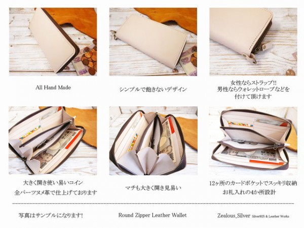 送料無料 ヌメ革 ラウンドファスナー ロングウォレット ハンドメイド 姫路レザー lwt60 手染め