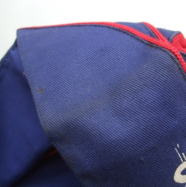 プリントに擦れ、帽子の前、後中心部分の折り目に沿って些細な変色(やけ)があります。