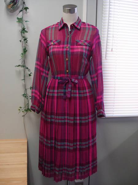 ★Bonachic★チェック柄 タックプリーツワンピース ピンク 9