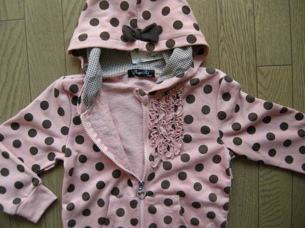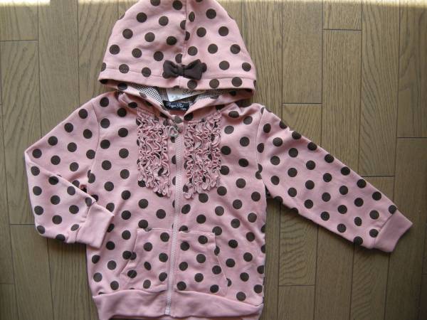 【新品】フードリボン付ドットパーカ 110