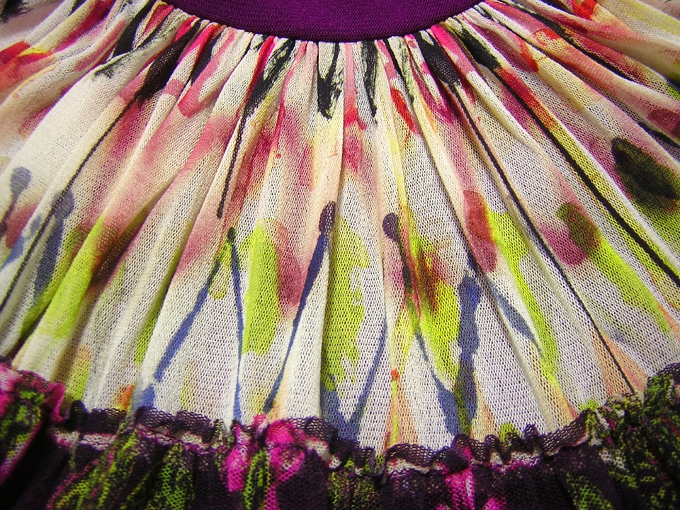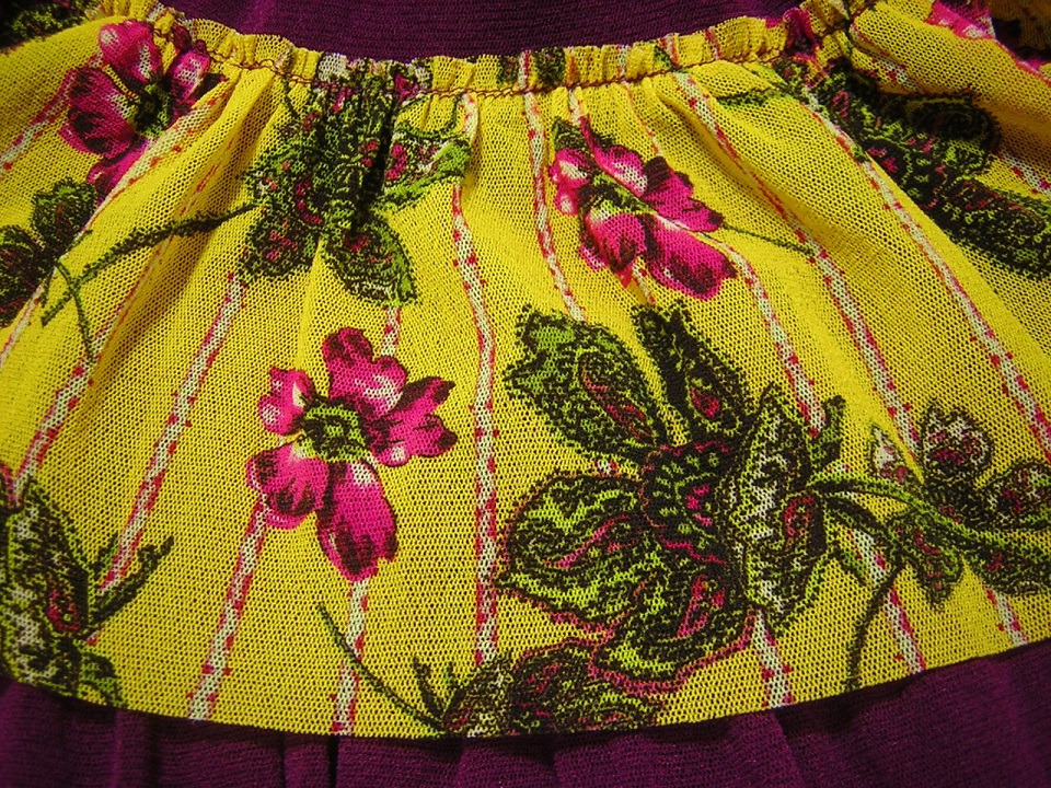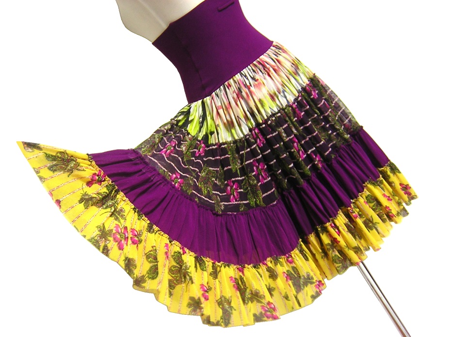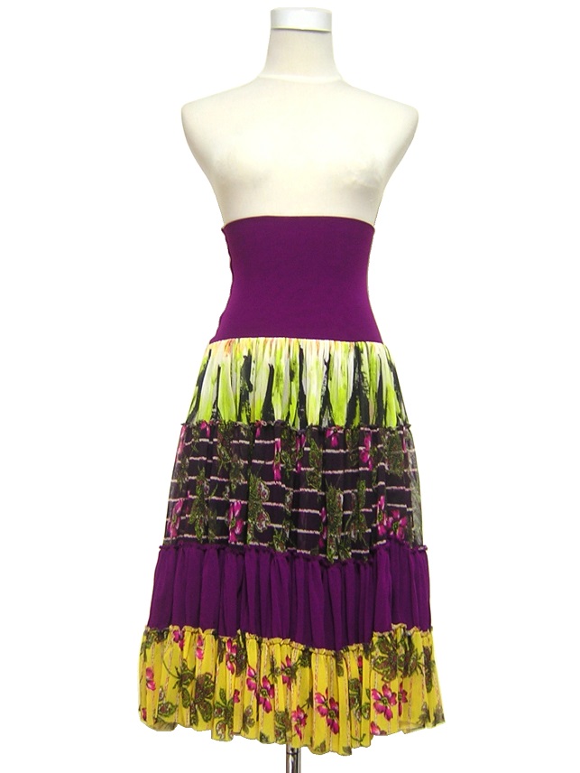 Jean Paul GAULTIER SOLEIL のイタリア製、 花柄チュールパッチワークスカートでございます。 伸縮性あり/ウエストゴム/2枚仕立て | |