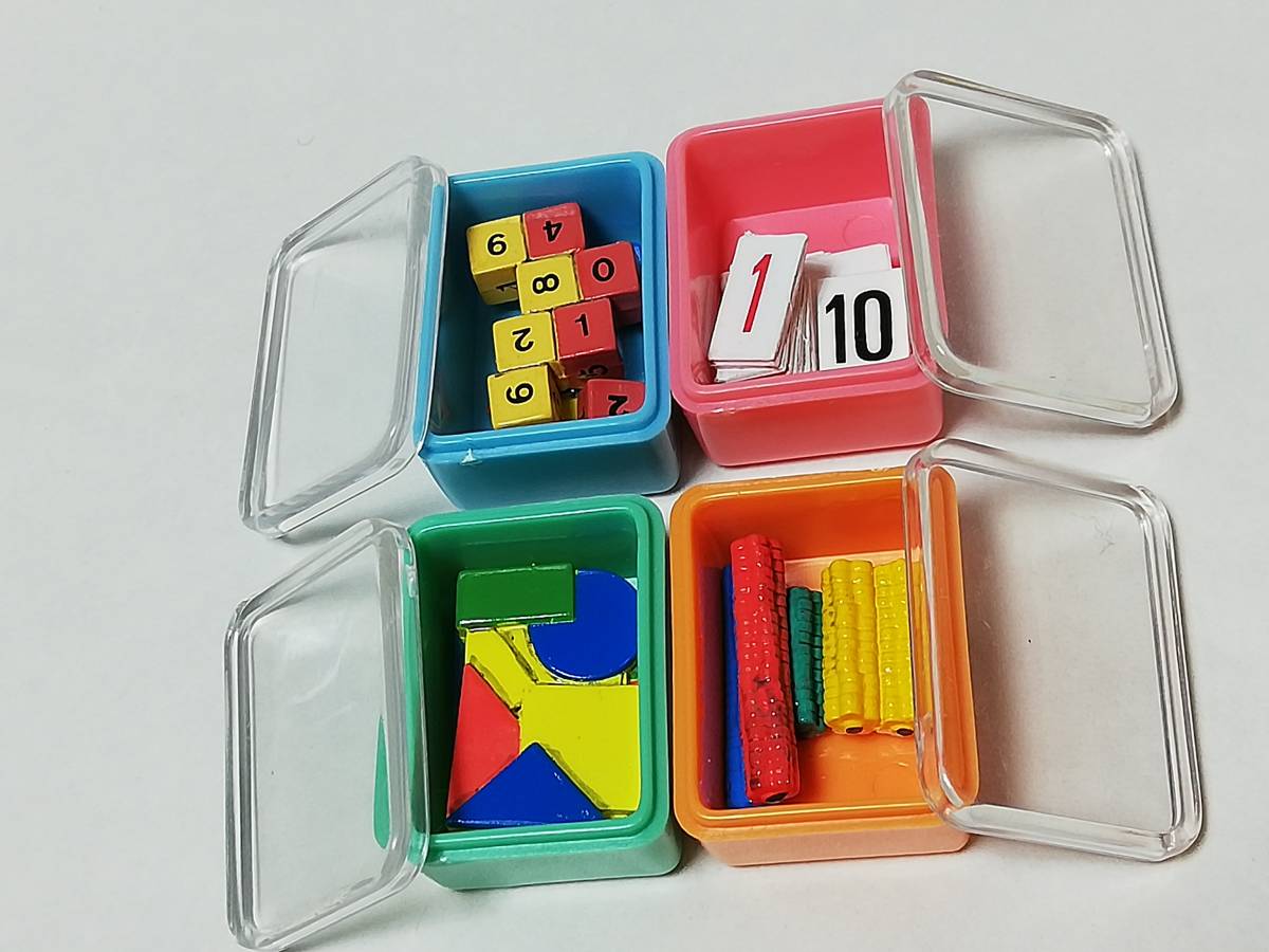 ミニブック付き 内容物:色板、数字カード、おはじき、サイコロ |
