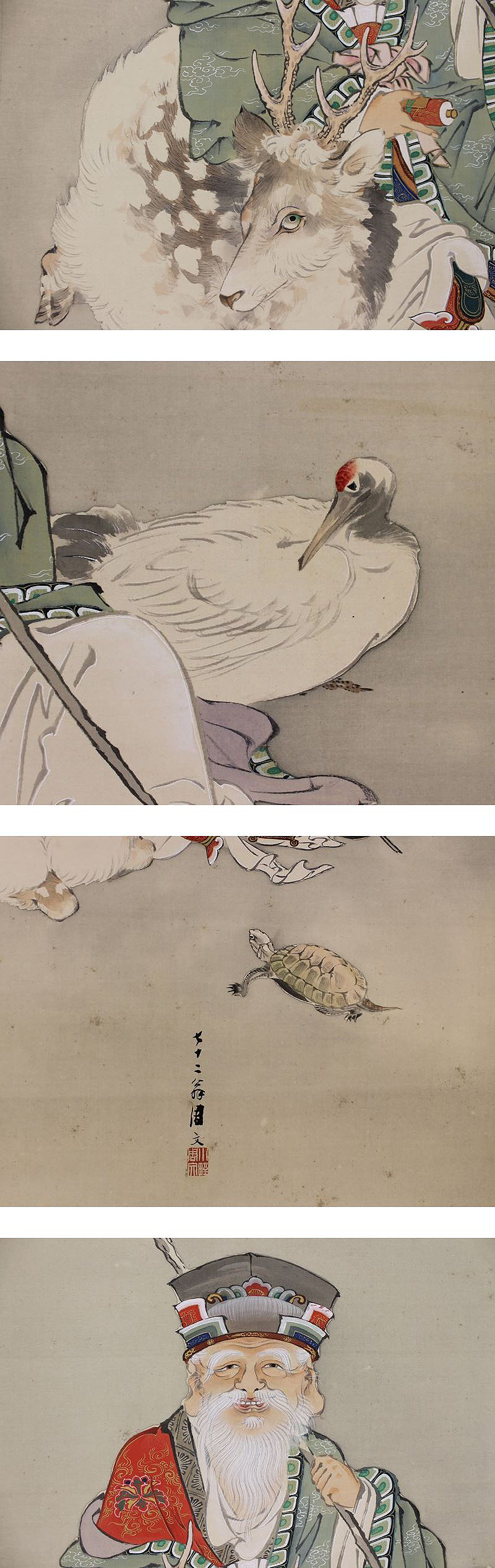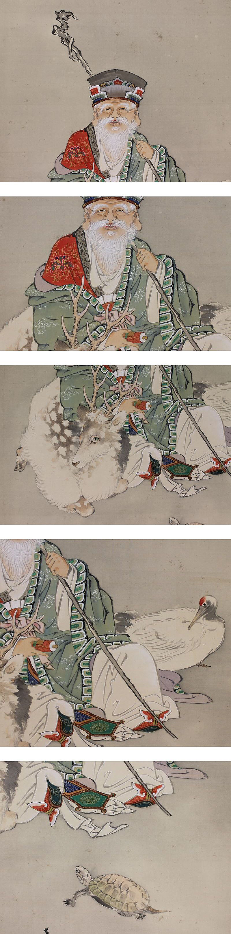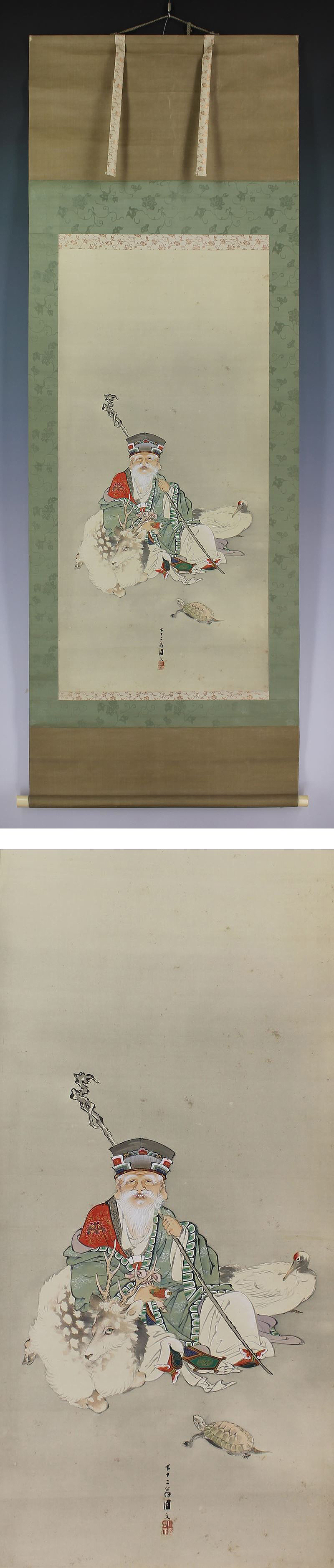 | №130658【真作】小野周文【寿老人】◆絹本◆合箱◆掛軸 | |
