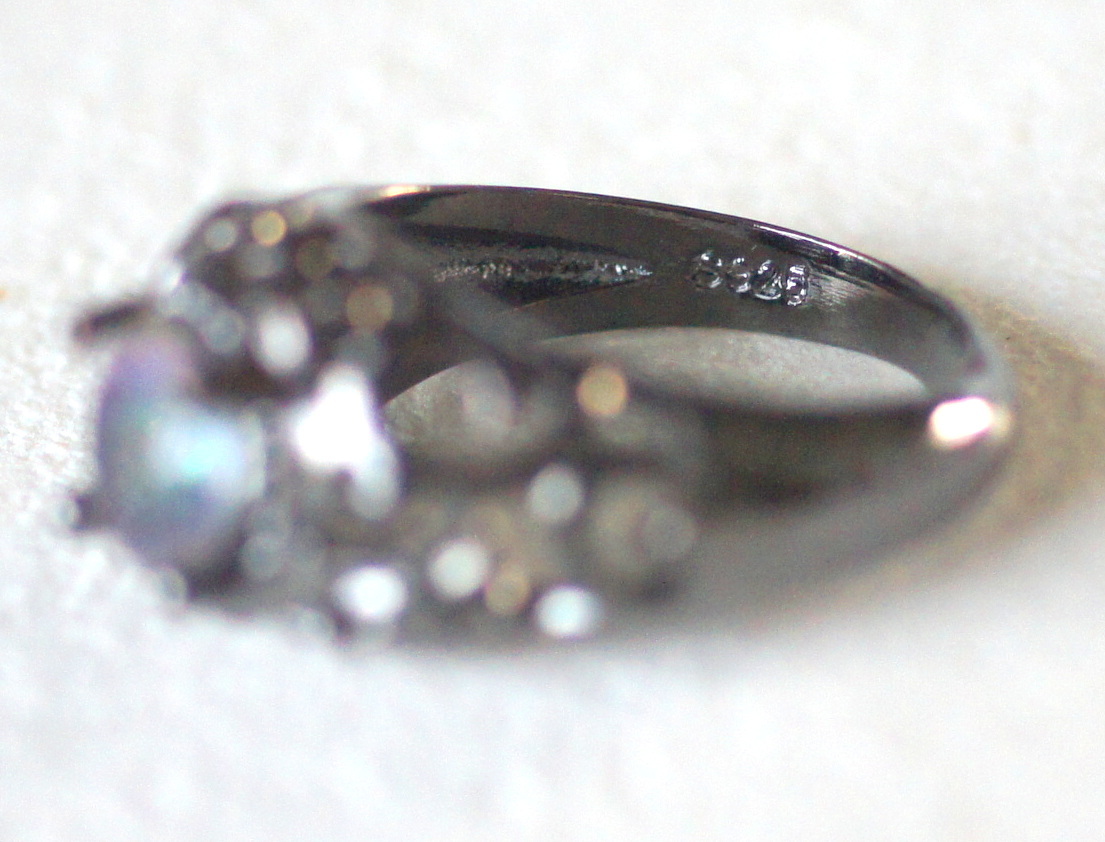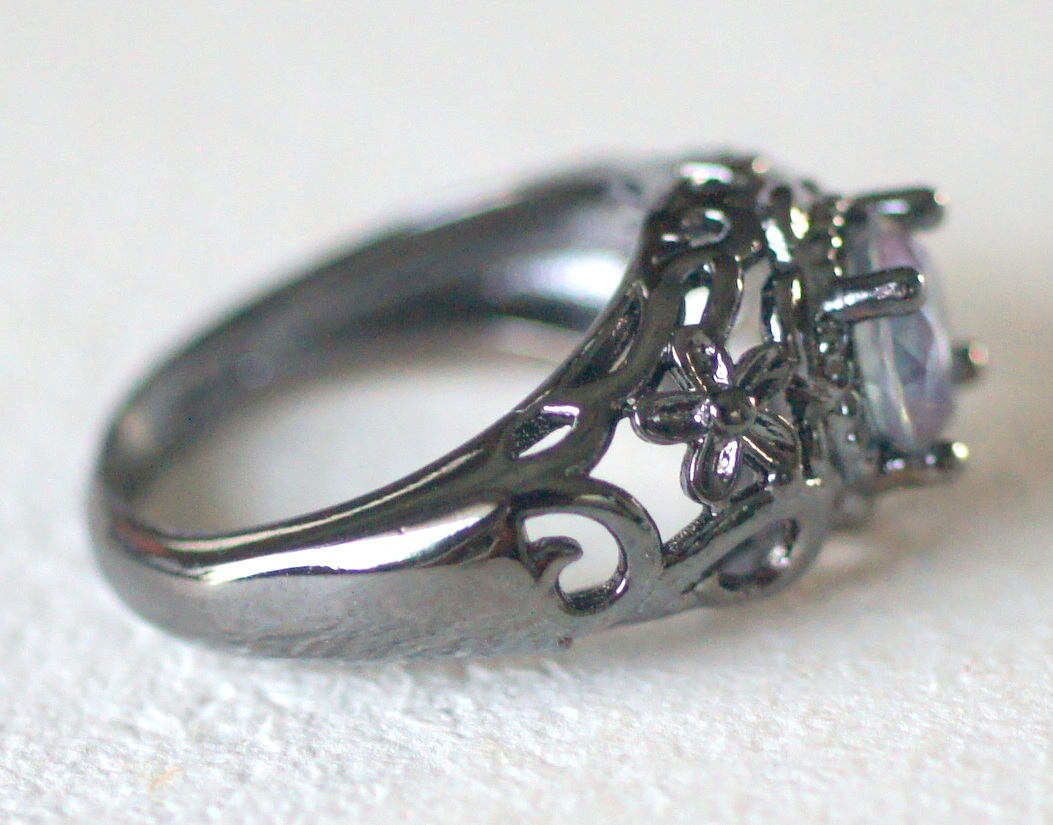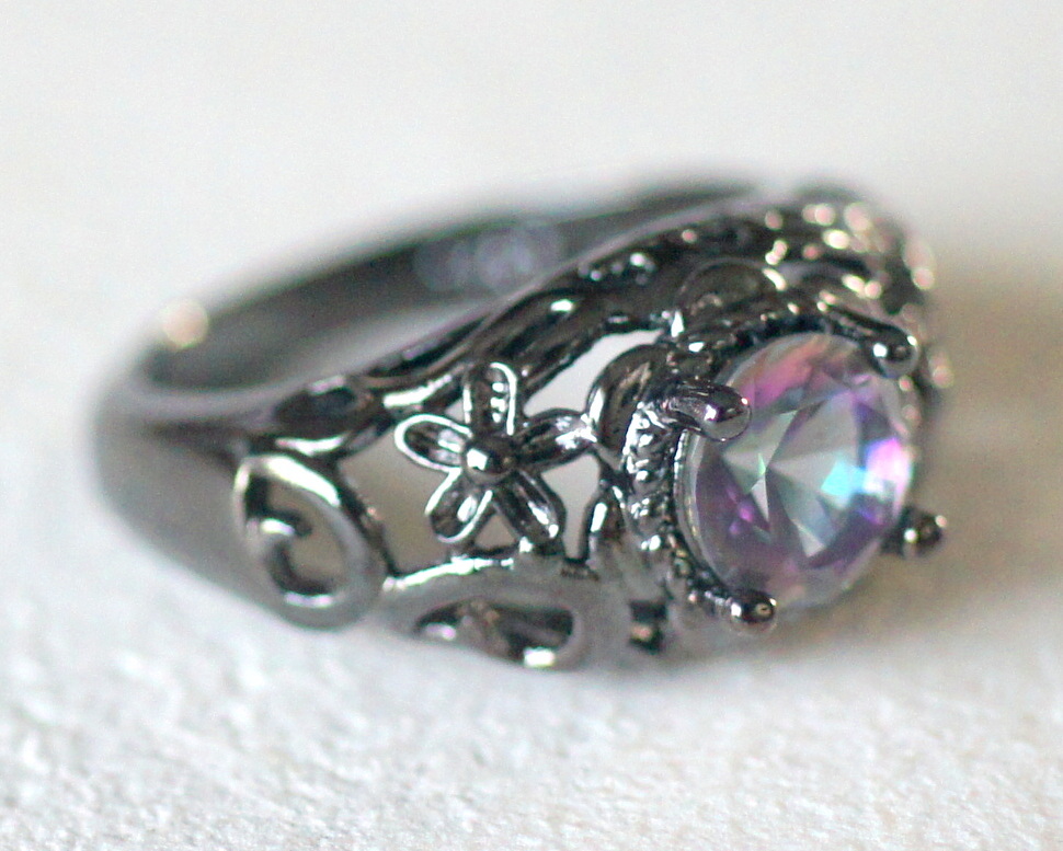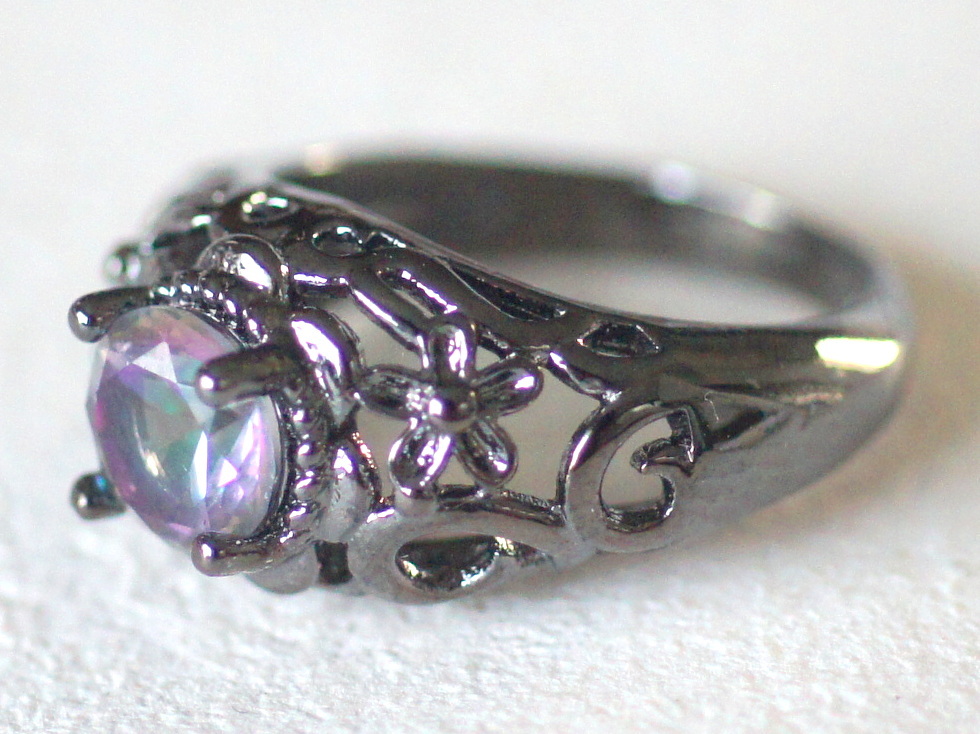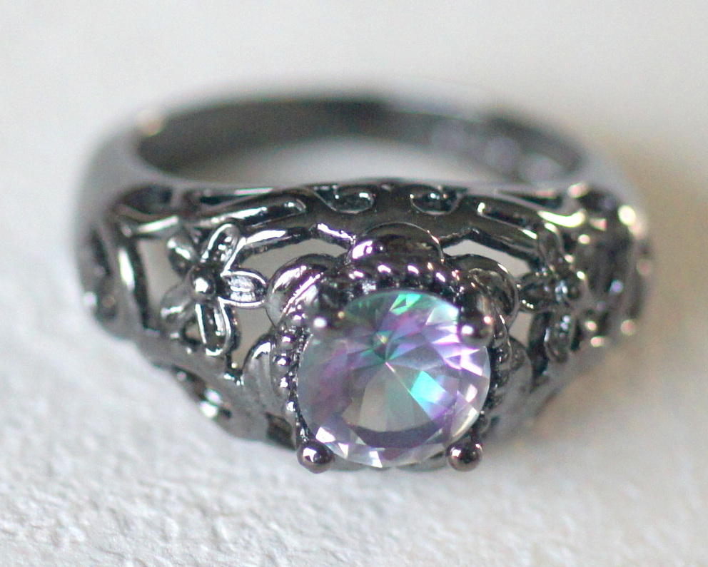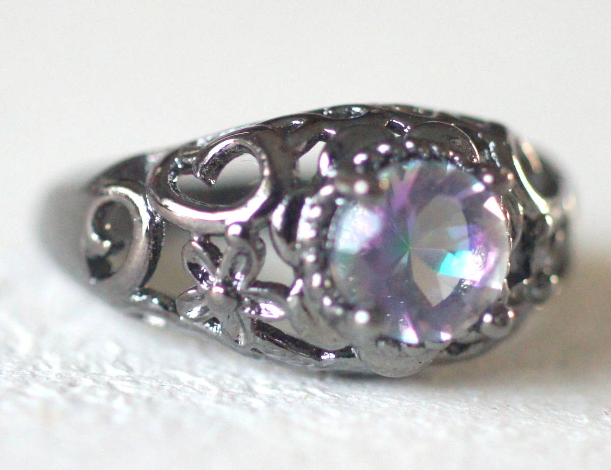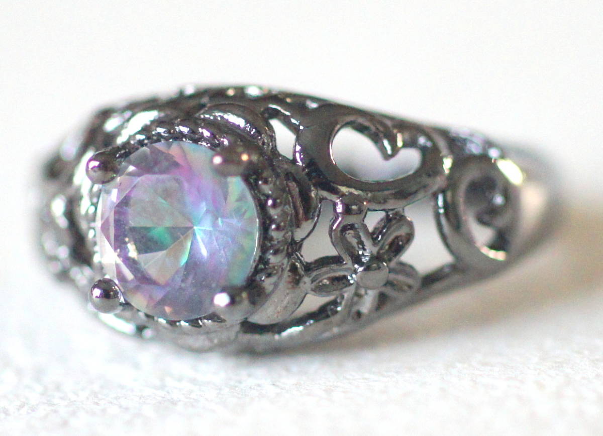未使用 新品 シルバー925製 レインボーガラス付き ブラックメタルカラーのリング 虹色 オーロラカラー ゴシック
