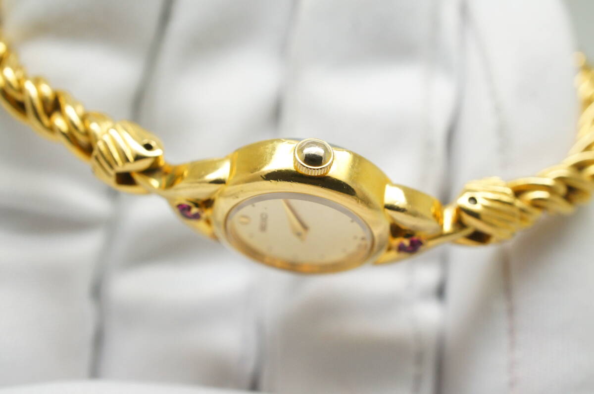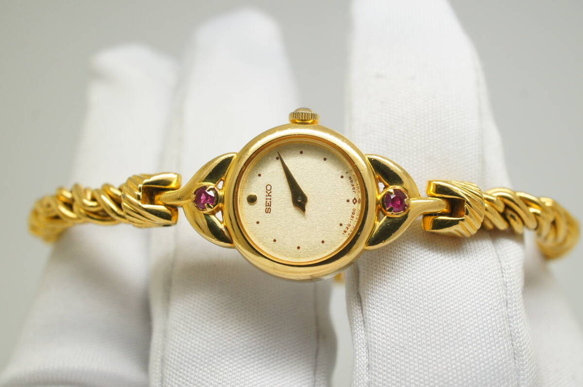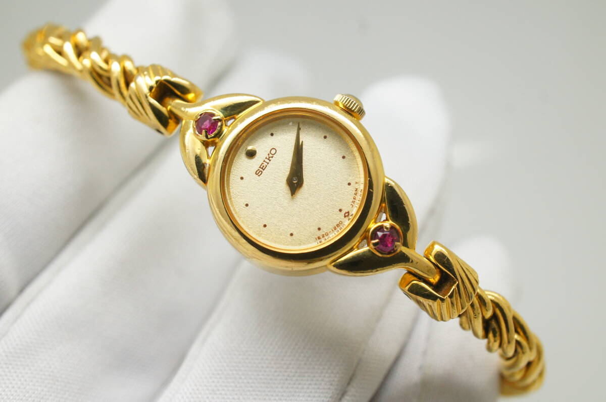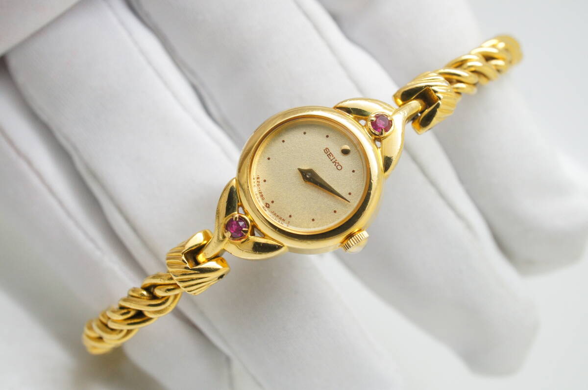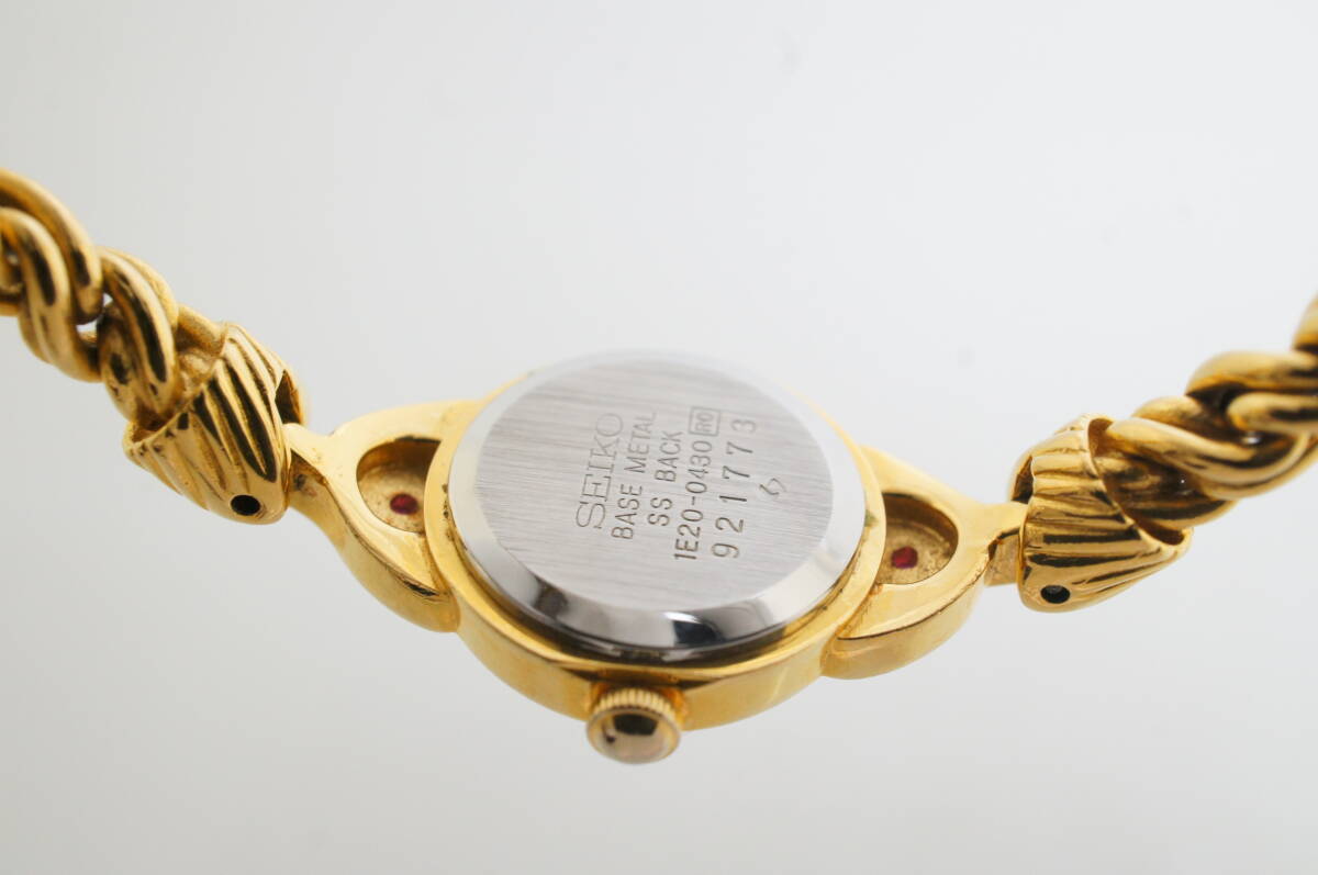 J95●作動良好 美品 SEIKO セイコー 1E20-0430 金文字盤 ラウンド型 ブレスウォッチ レディース腕時計 ゴールド金 お洒落 クォーツ